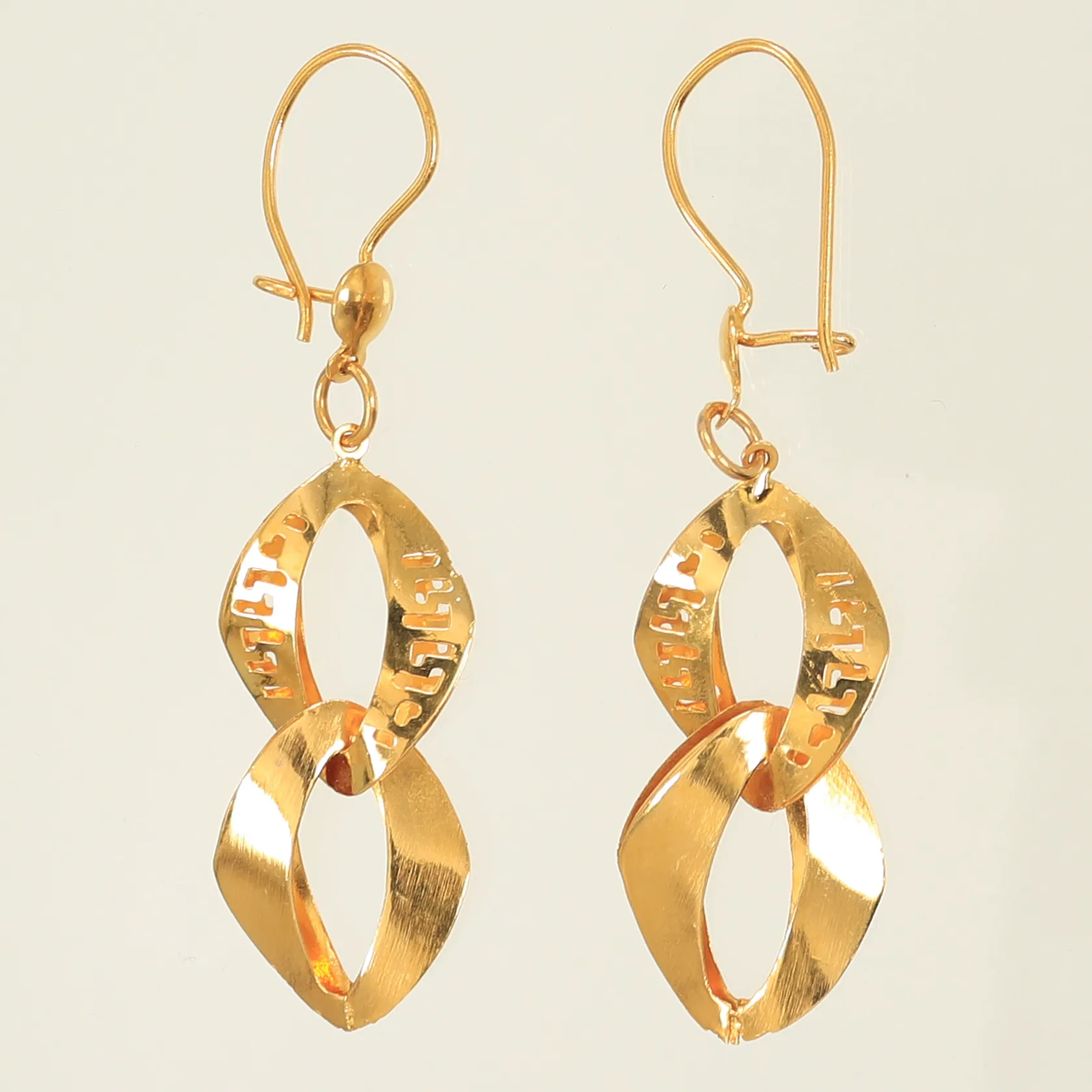 Ett par örhängen, längd ca, 53mm, bredd 1-14mm, ojämna öglor, 21K, 3,7g Vikt: 3,7 g.
