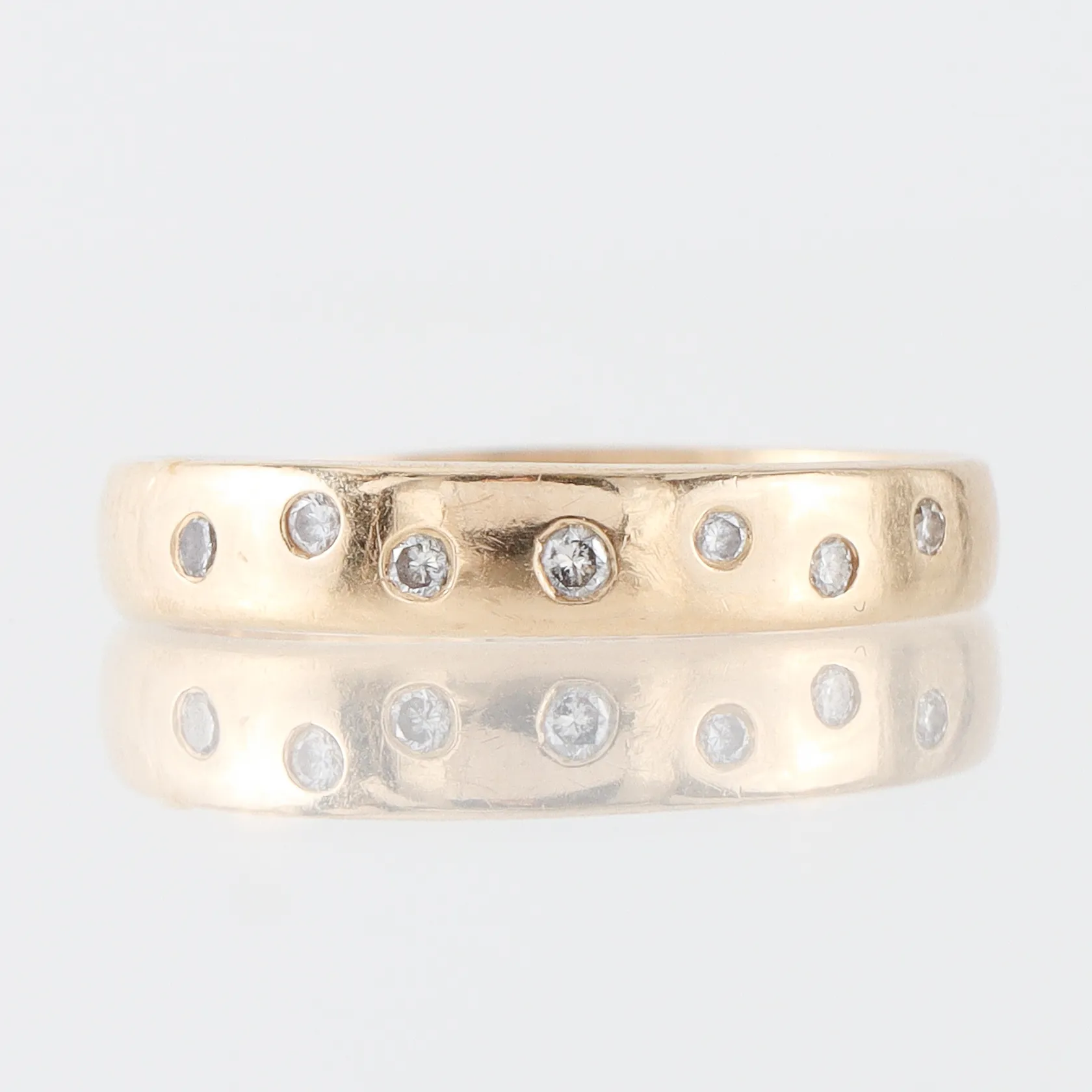 Diamantring 18k, med 7 st små diamanter, storlek 18 mm, bredd 3 mm, 18k. Vikt: 2,8 g.