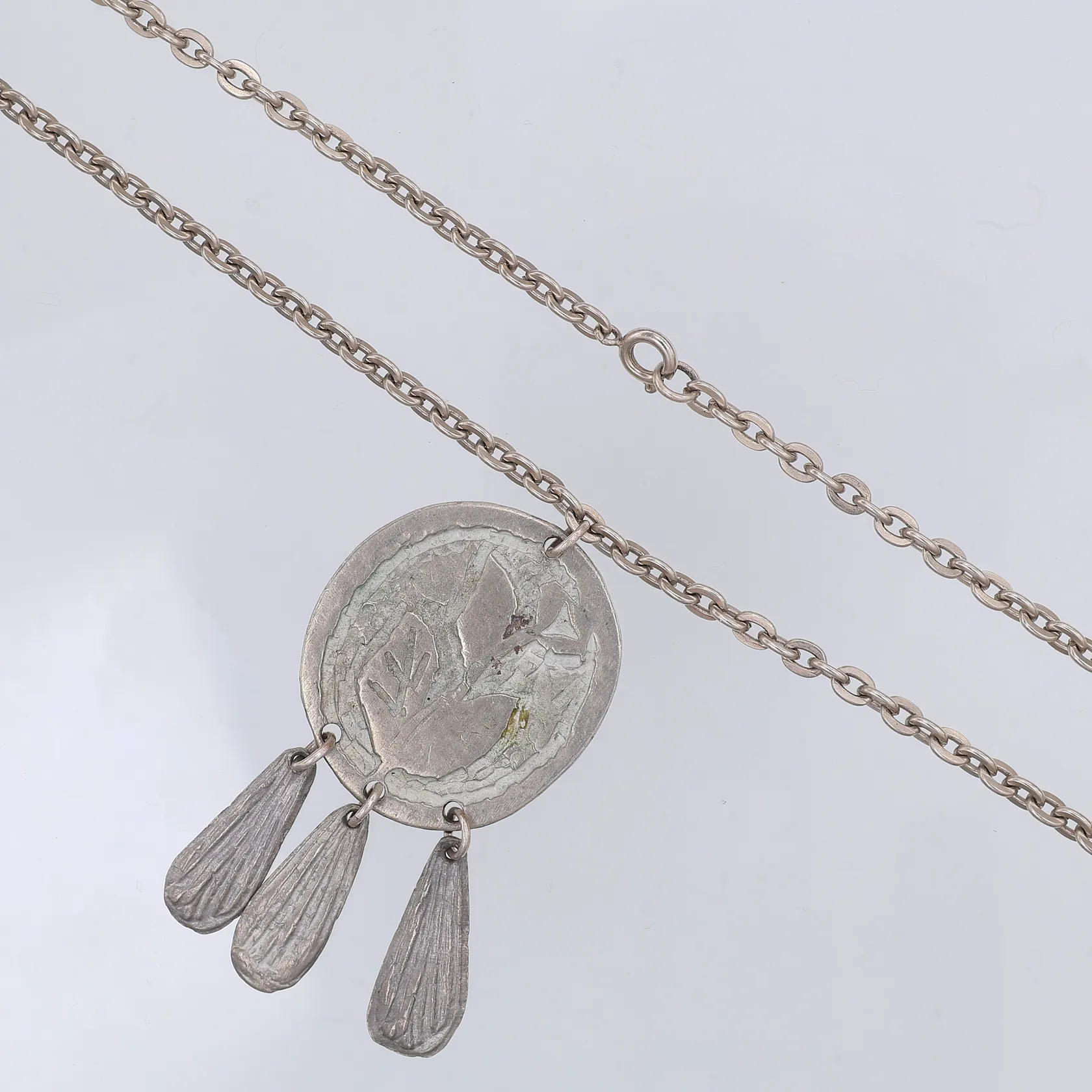 Collier Ankar 61cm, metall, hänge blomma 65mm, år 1976, tenn