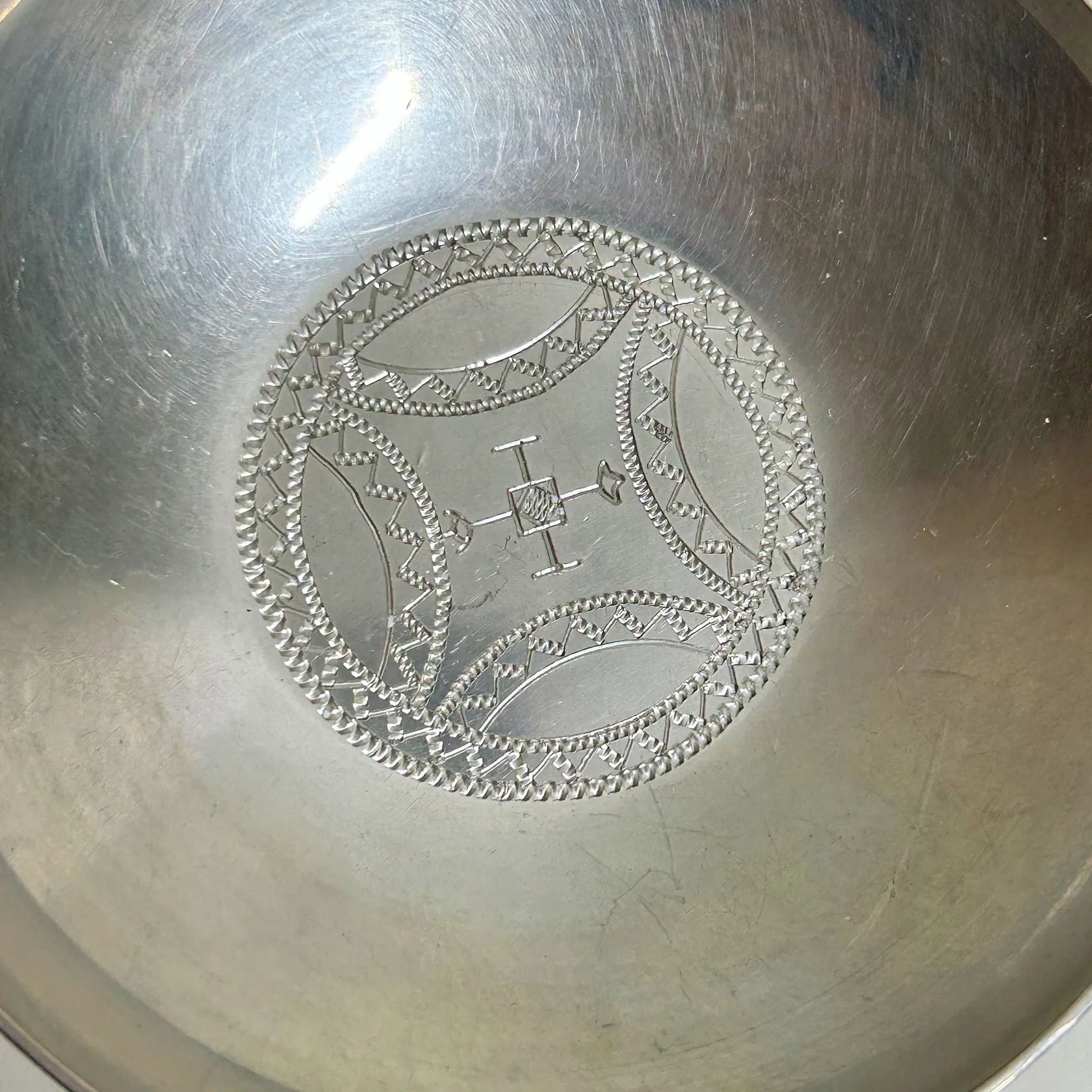 Skål på fot samiskt mönster, Ø12cm, höjd ca 6cm, stämplat DE Svenskt tenn