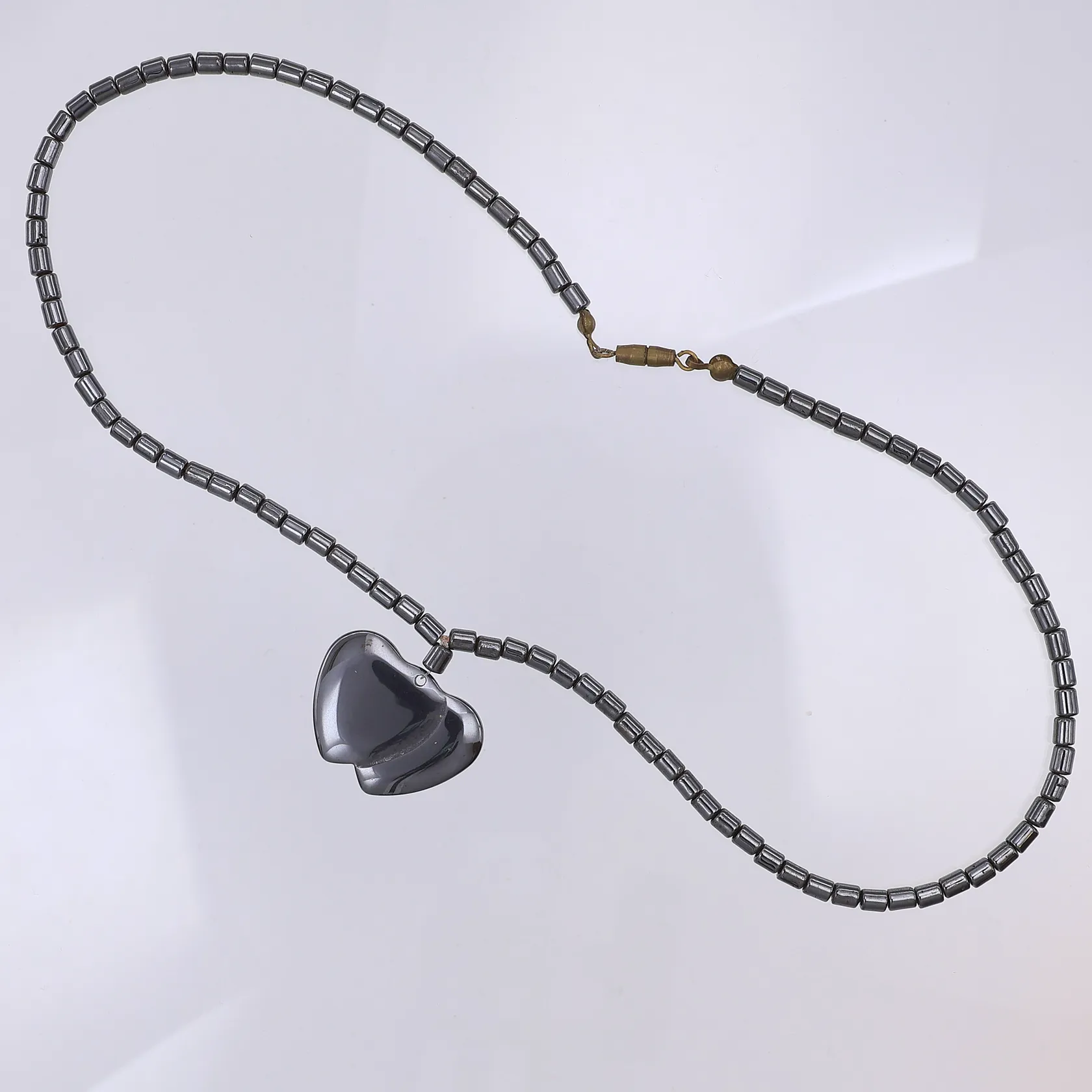 Collier slipad hematit 43cm, hjärtan 23mm, metallås