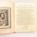 Bok Adventures of Telemachus, Frances Salignac de la Motte Fenelon, sannolikt senare skinnband med guldprägling, skador på band, ej fullständigt genongången.