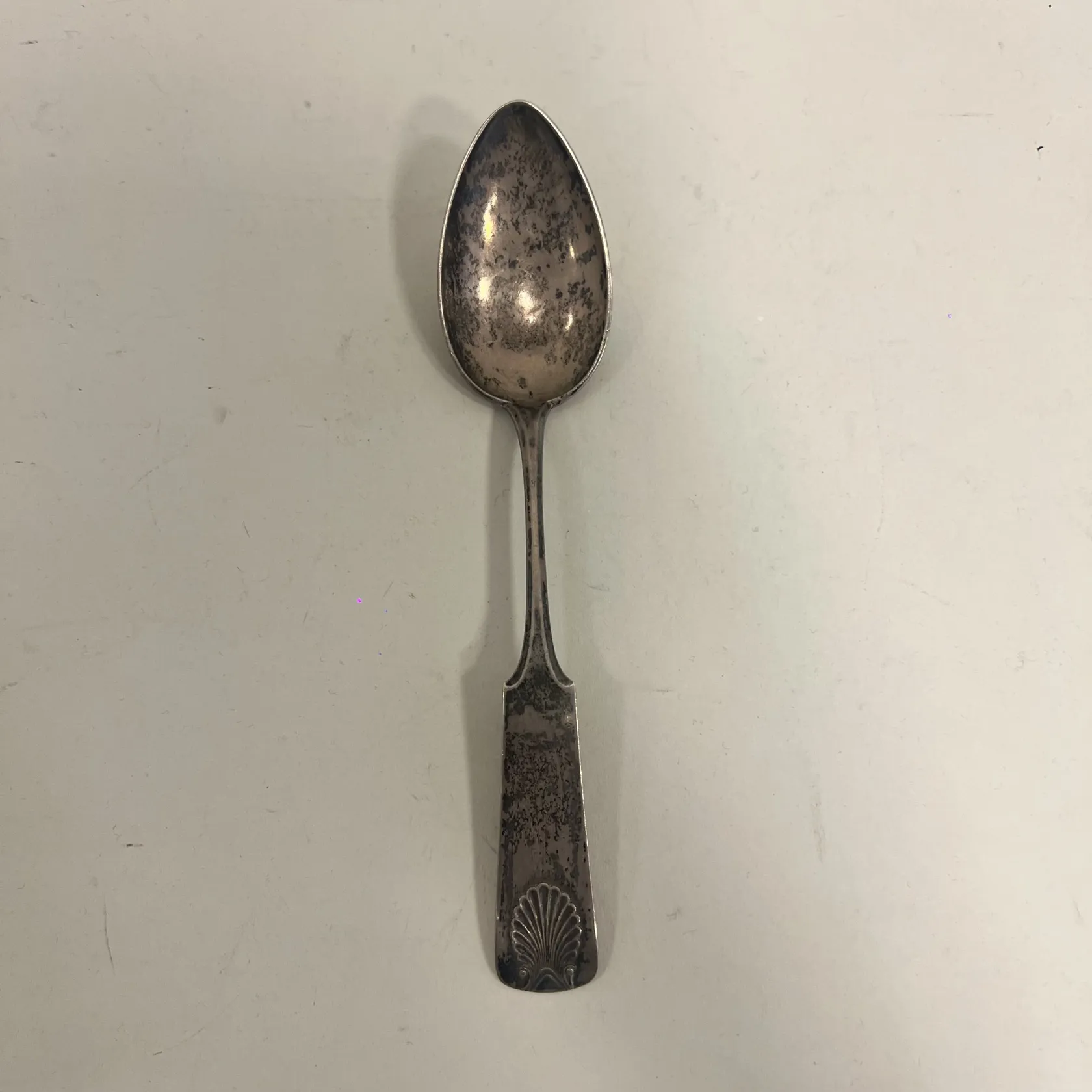 Sked, modell snäck, längd 17,5cm, gravyr, Finland, 813/1000 silver Vikt: 31,1 g.