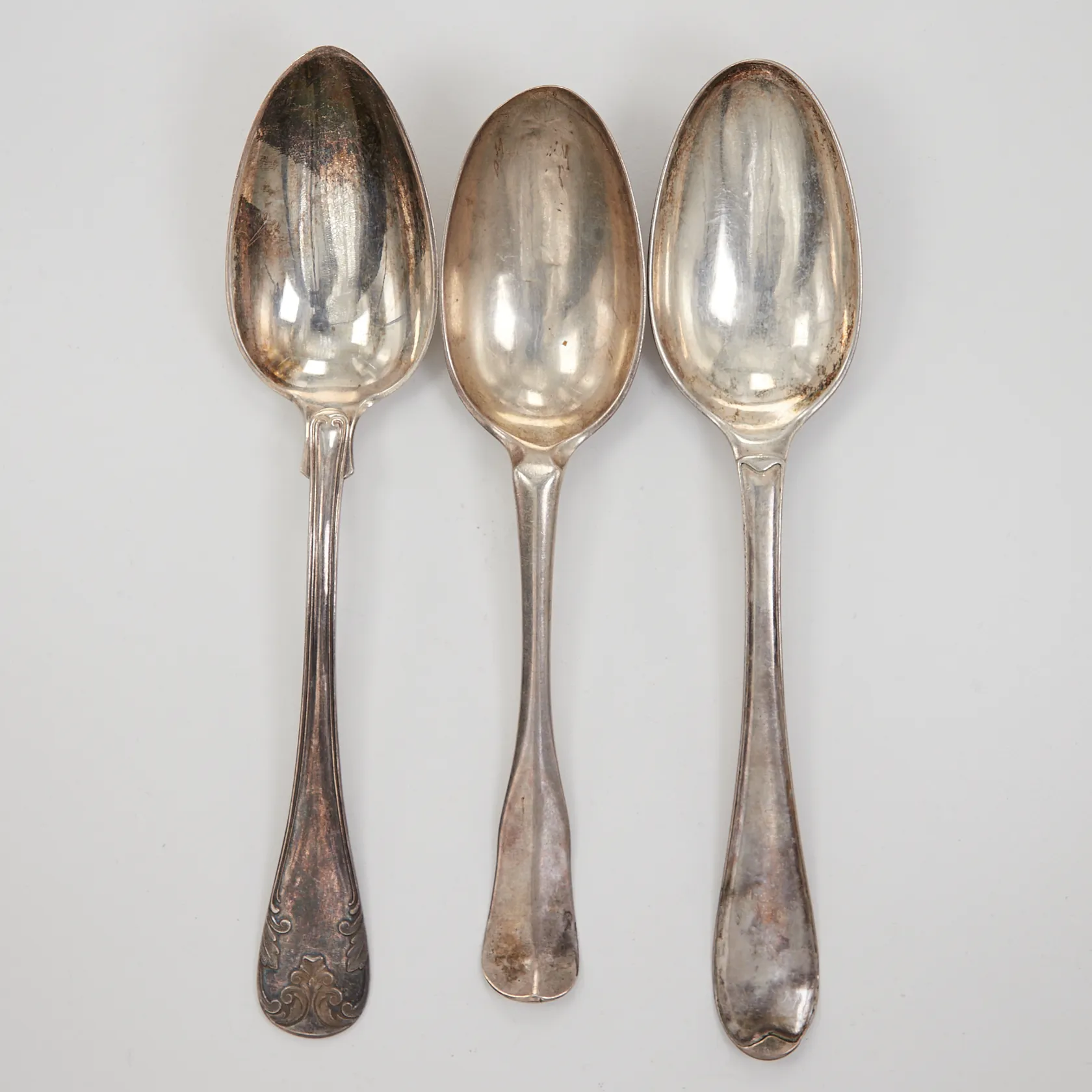 3 Bordsskedar, olika modeller/defekt/gravyr, Silver Vikt: 174,5 g.