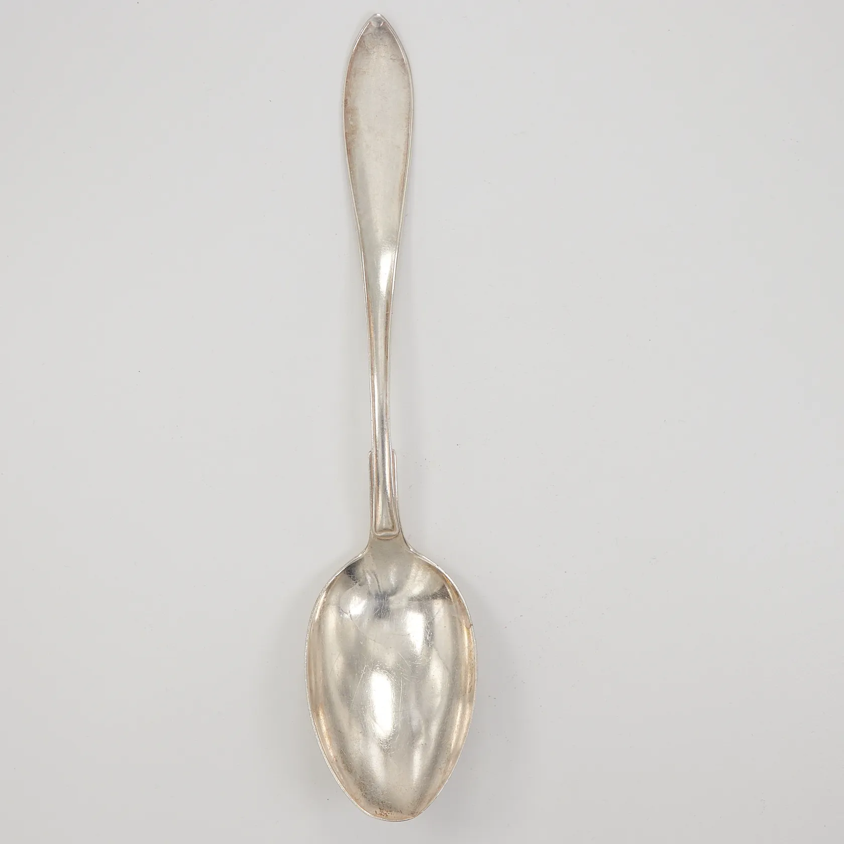Matsked, 20,3cm, modell svensk spetsig, gravyr, Hallbergs år 1929, Vikt: 43,3 g.