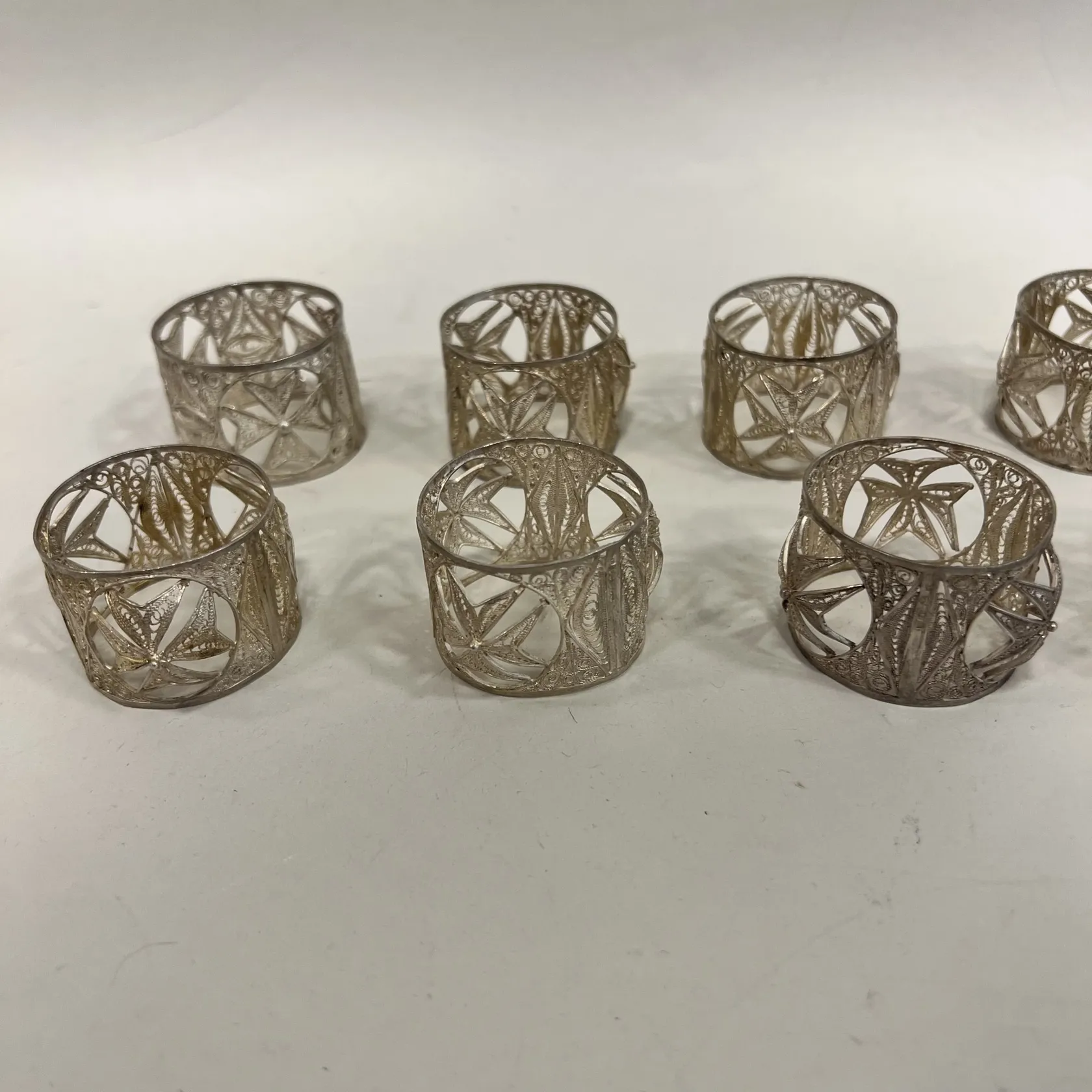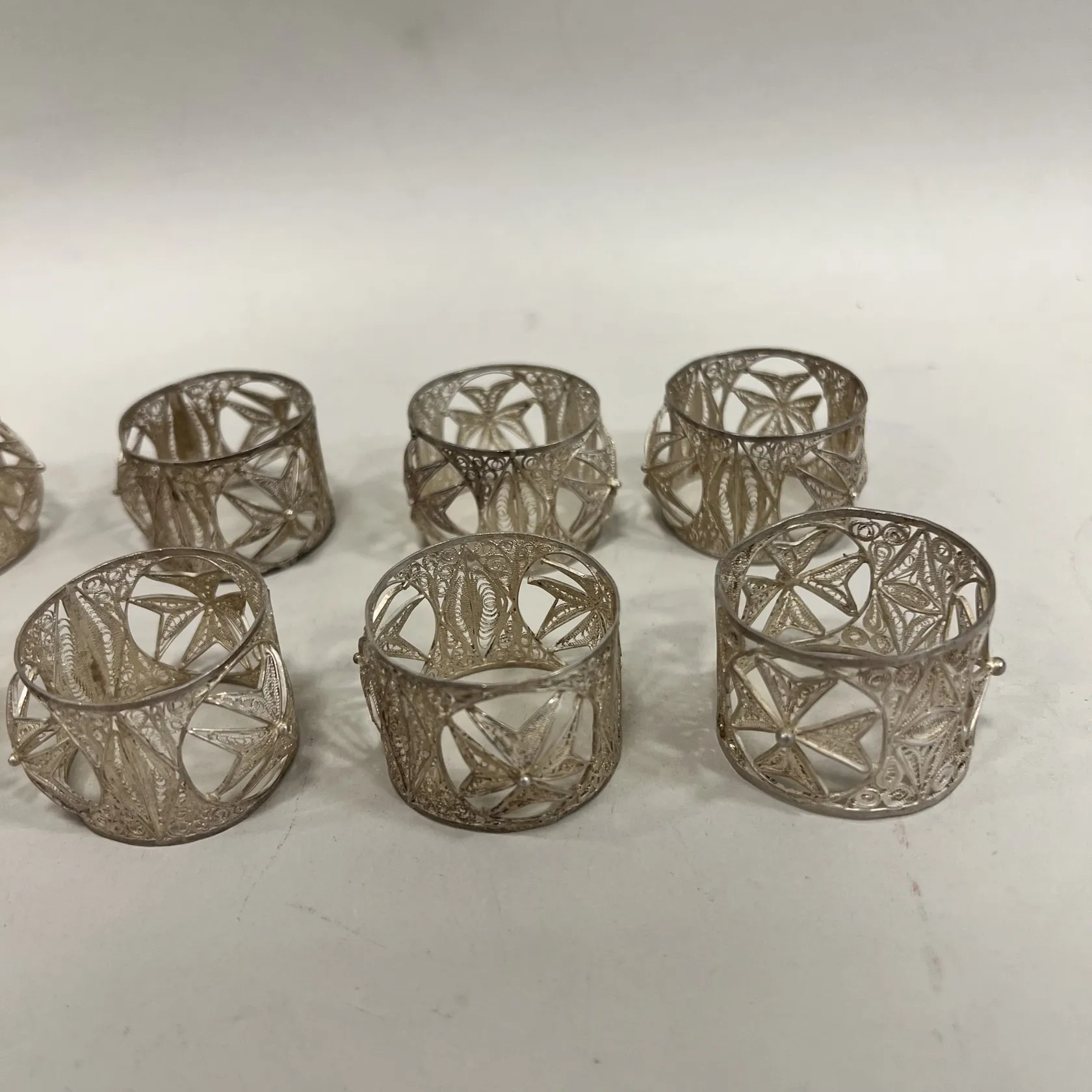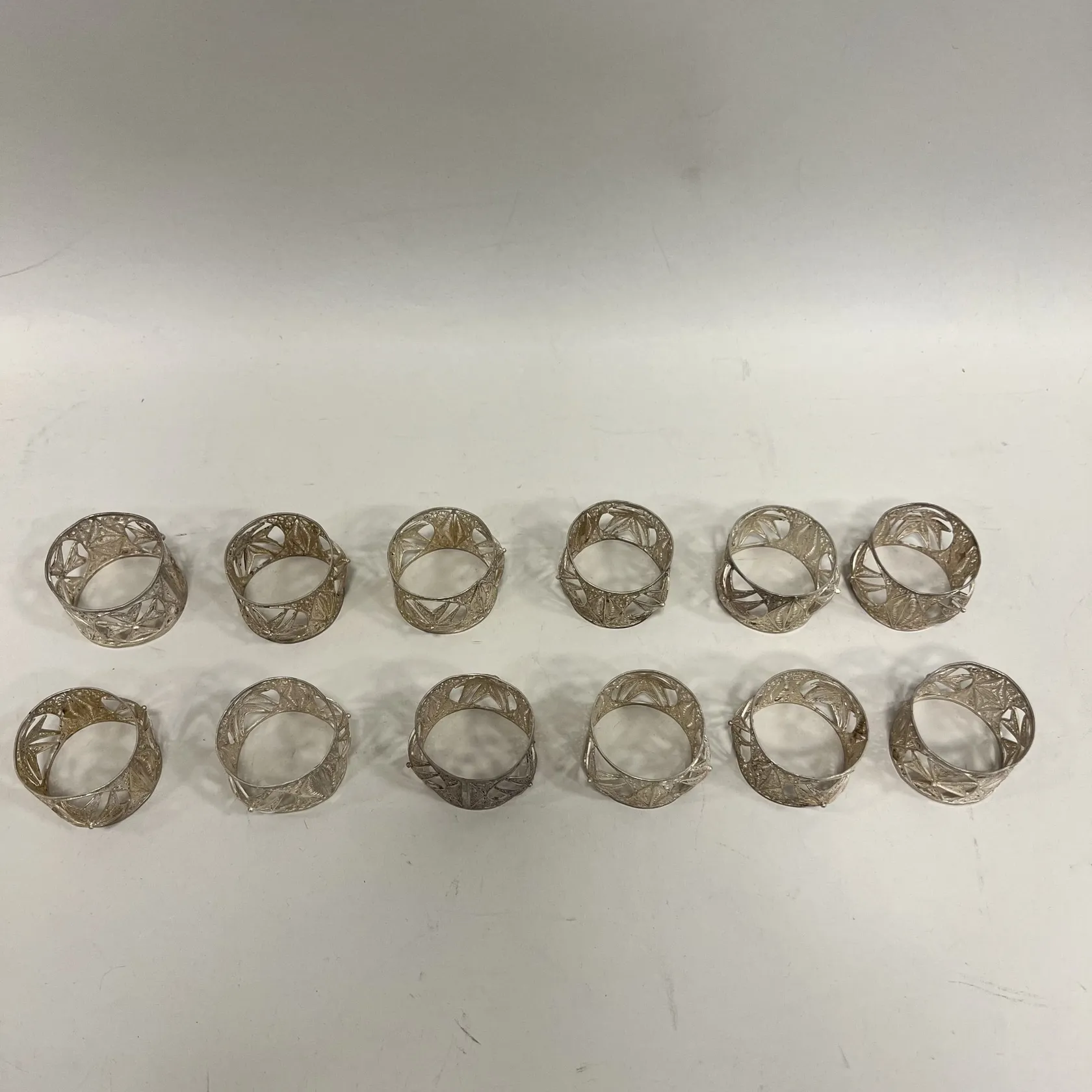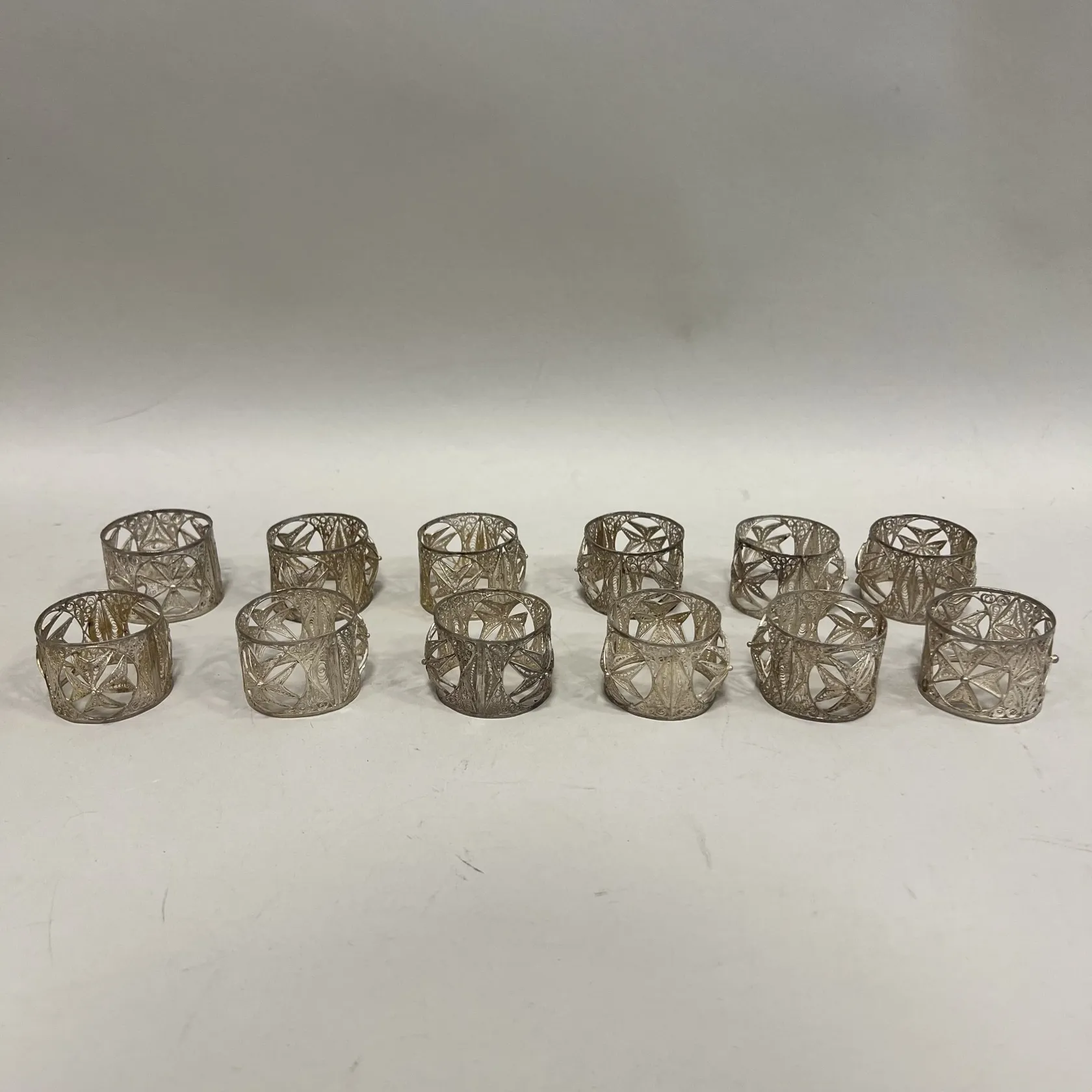 Servettringar, 12st, Ø ca 35mm, bredd 28mm, filigranarbete, 917/1000 silver Vikt: 149,8 g.
