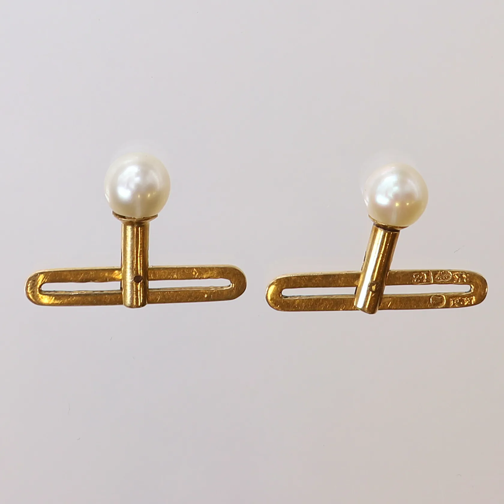 Skjortknappar med odlade pärlor, 20,5x5,8mm, svenska stämplar, 18K Vikt: 2,4 g.