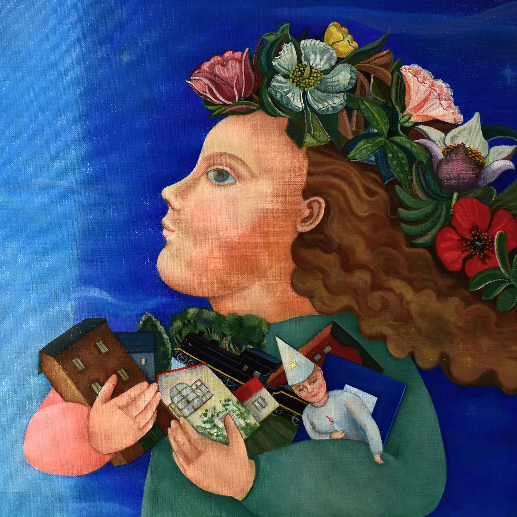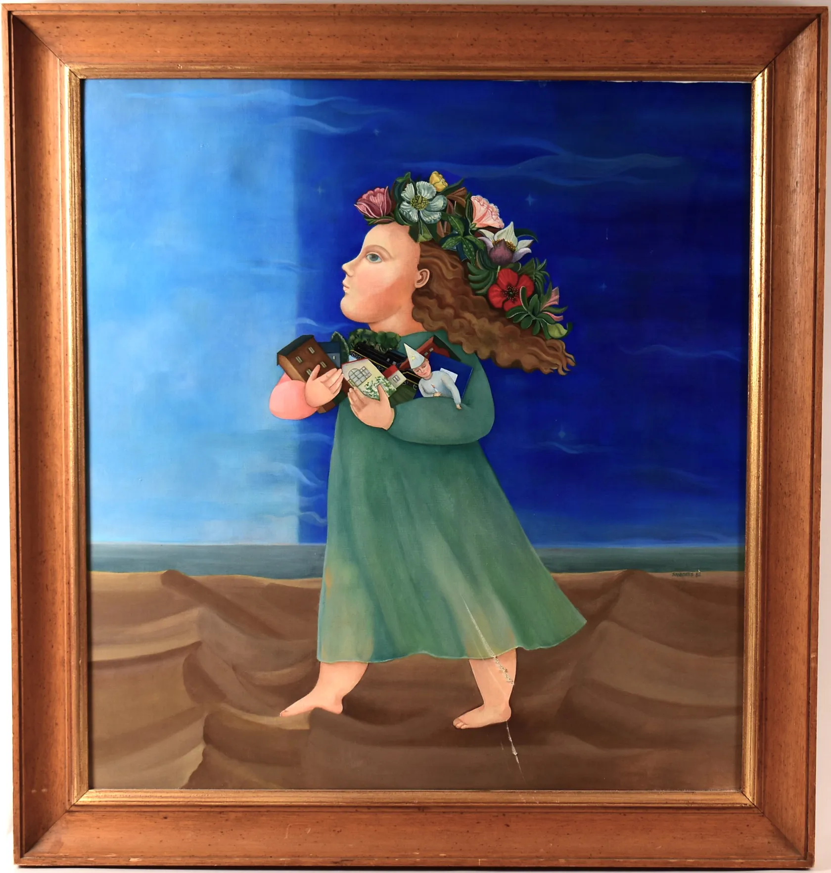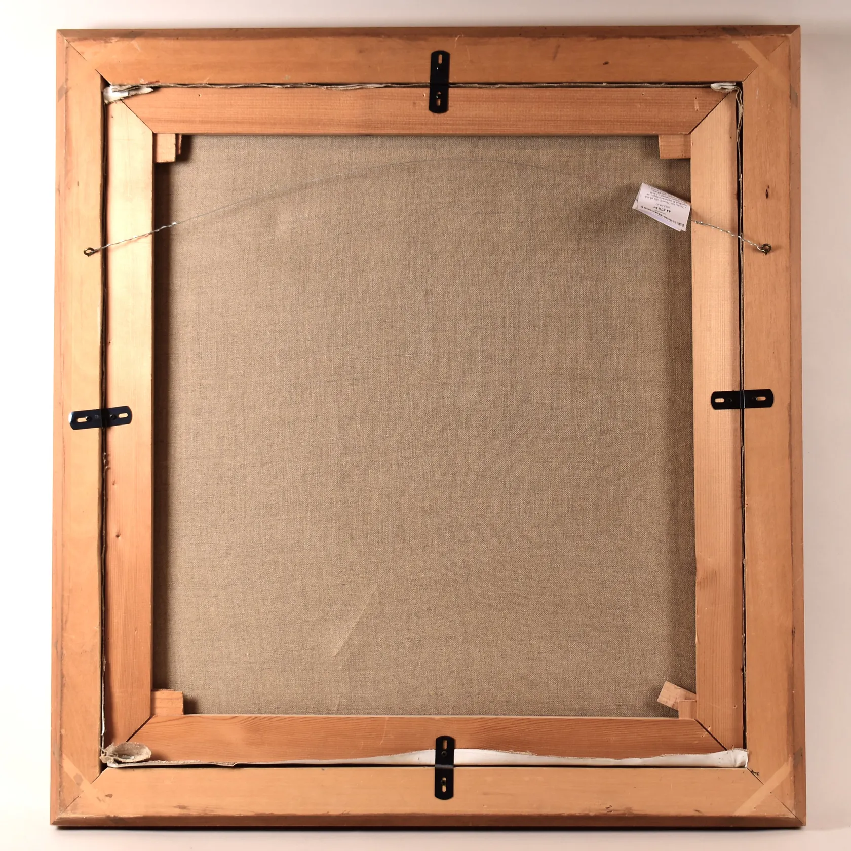 Tavla olja på duk Monica Sangberg, signerad och daterad, ca 70x67cm, lagad duk. Skickas med postpaket. Omfattas av BUS-avgift.