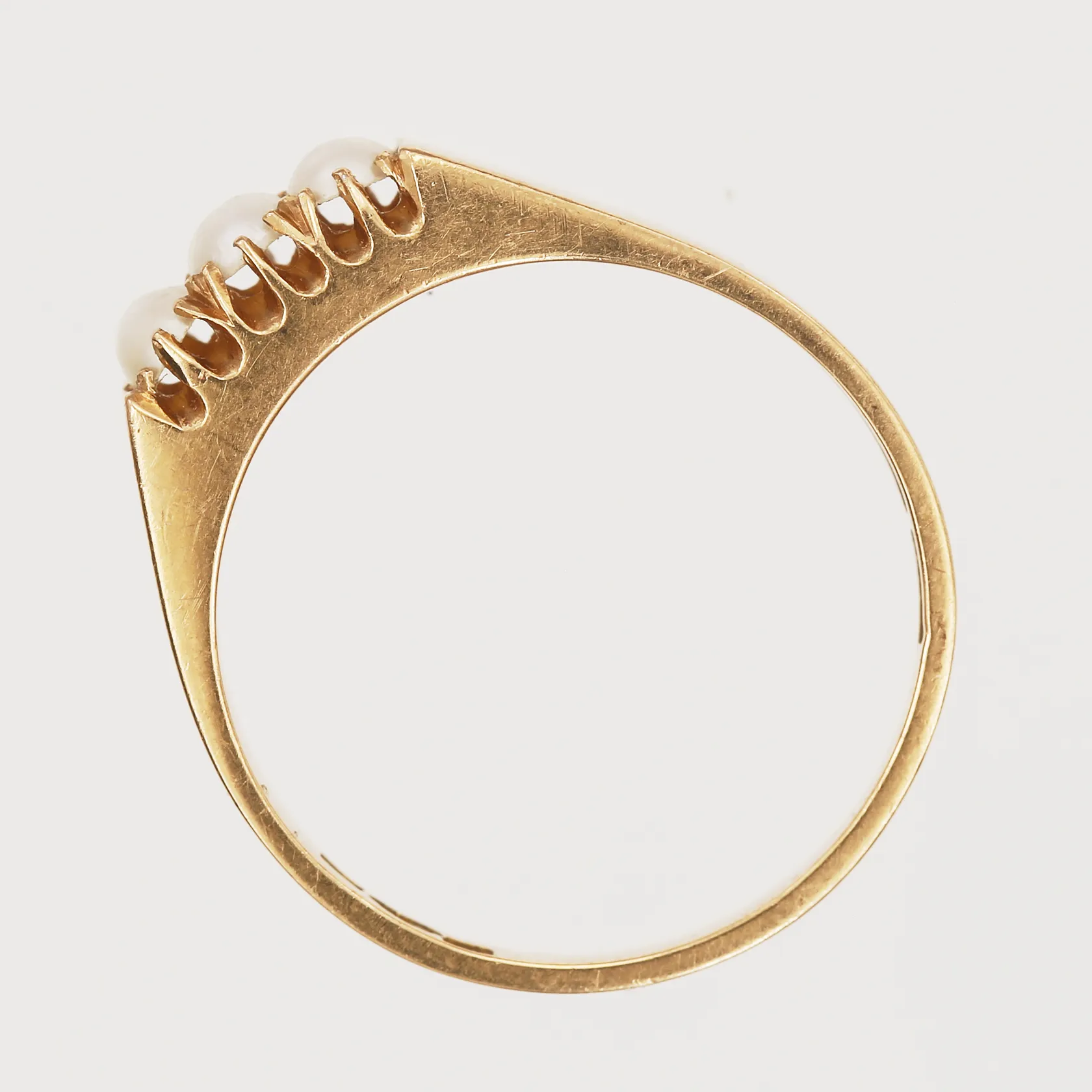 Ring med pärlor, stl 17, repig, 18K Vikt: 3,7 g.