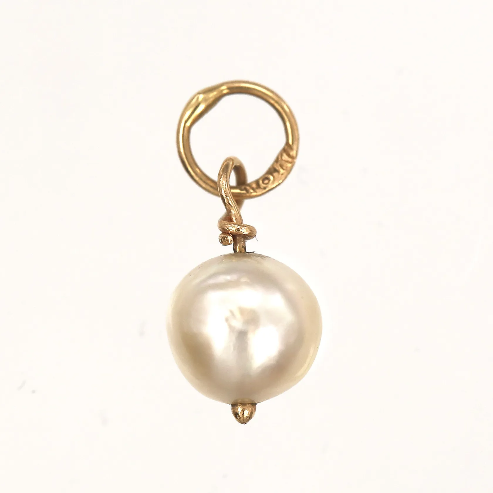 Hänge med odlad pärla ca Ø6mm, längd 14mm inklusive ögla, 18K Finns för visning på Pantbanken Skärholmen Vikt: 0,5 g.