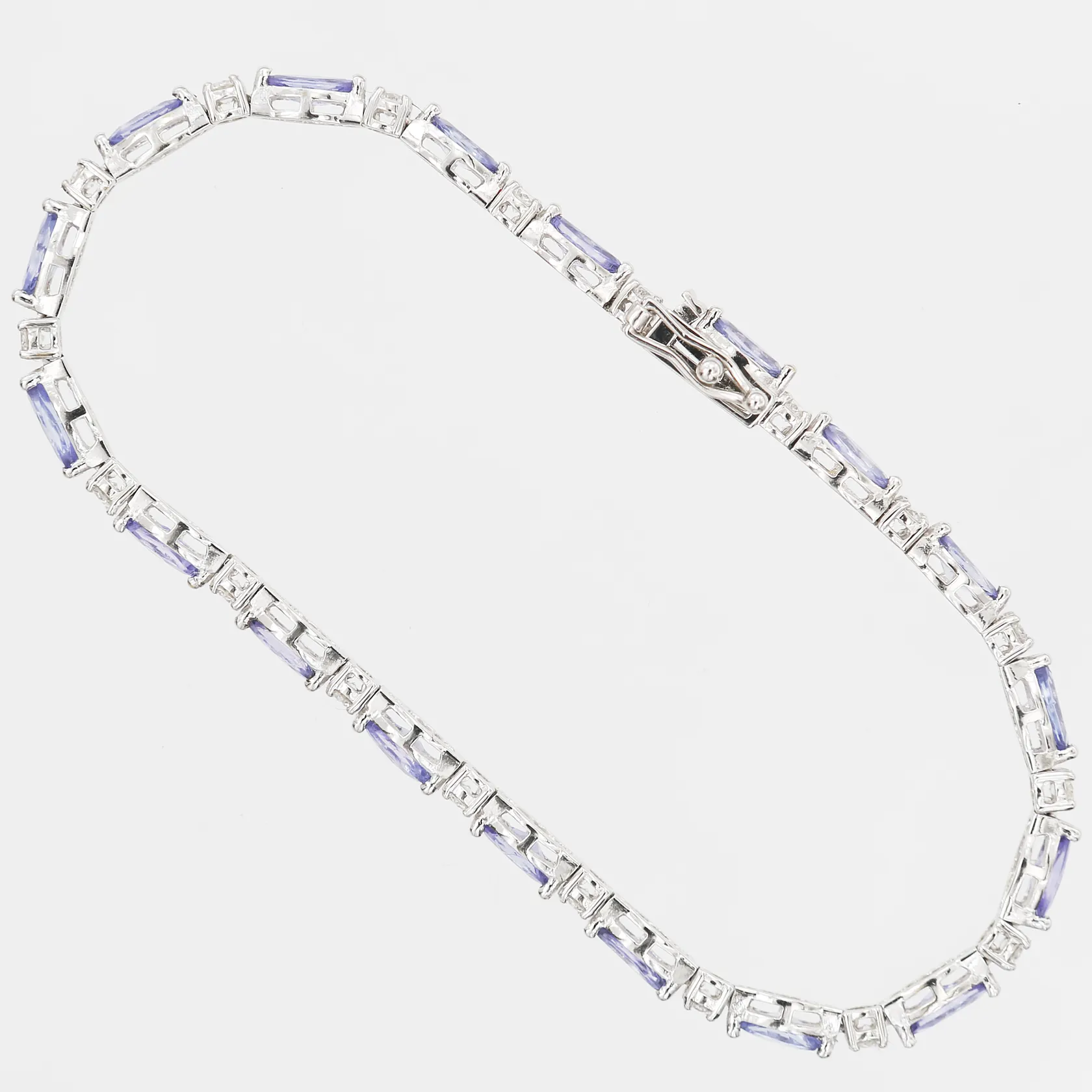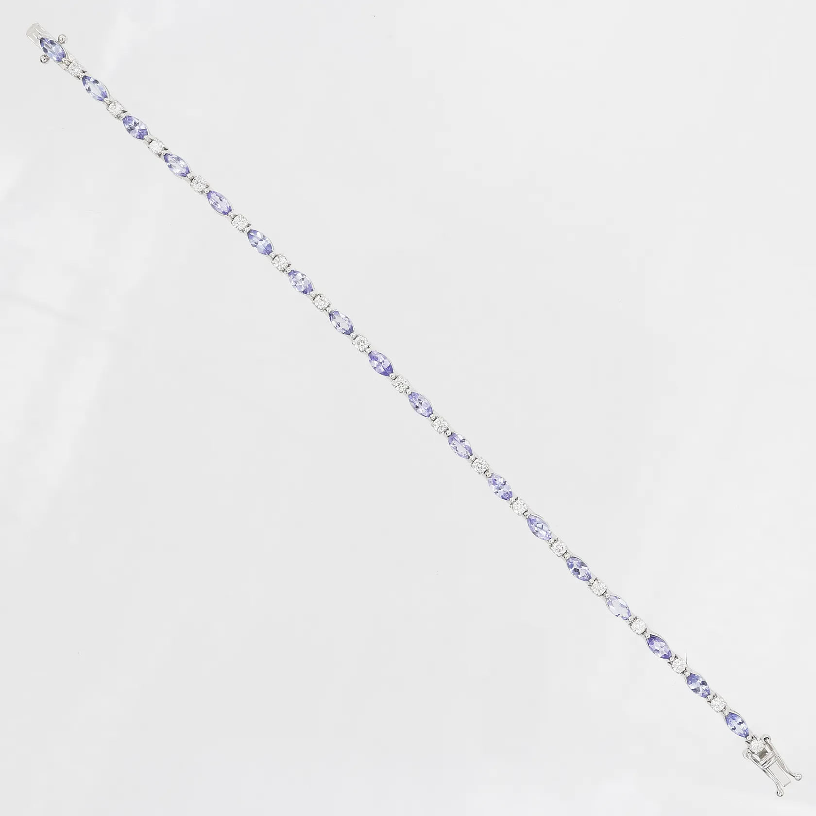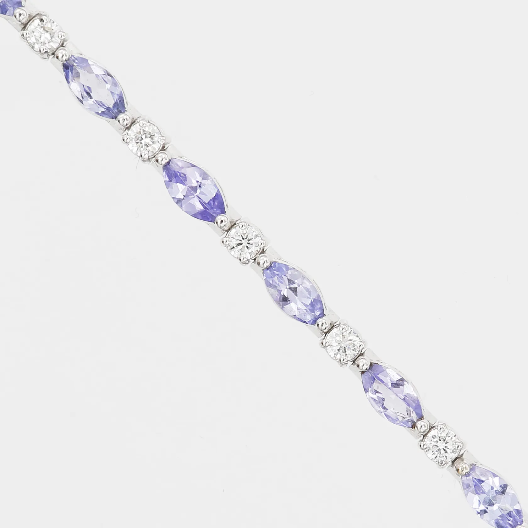 Armband med tanzaniter totalt ca 3,70ct samt briljantslipade diamanter totalt ca 1,00ct, längd 18,5cm, bredd 3mm, med certifikat, 18K vitguld Finns för visning på Pantbanken Skärholmen Vikt: 9,1 g.