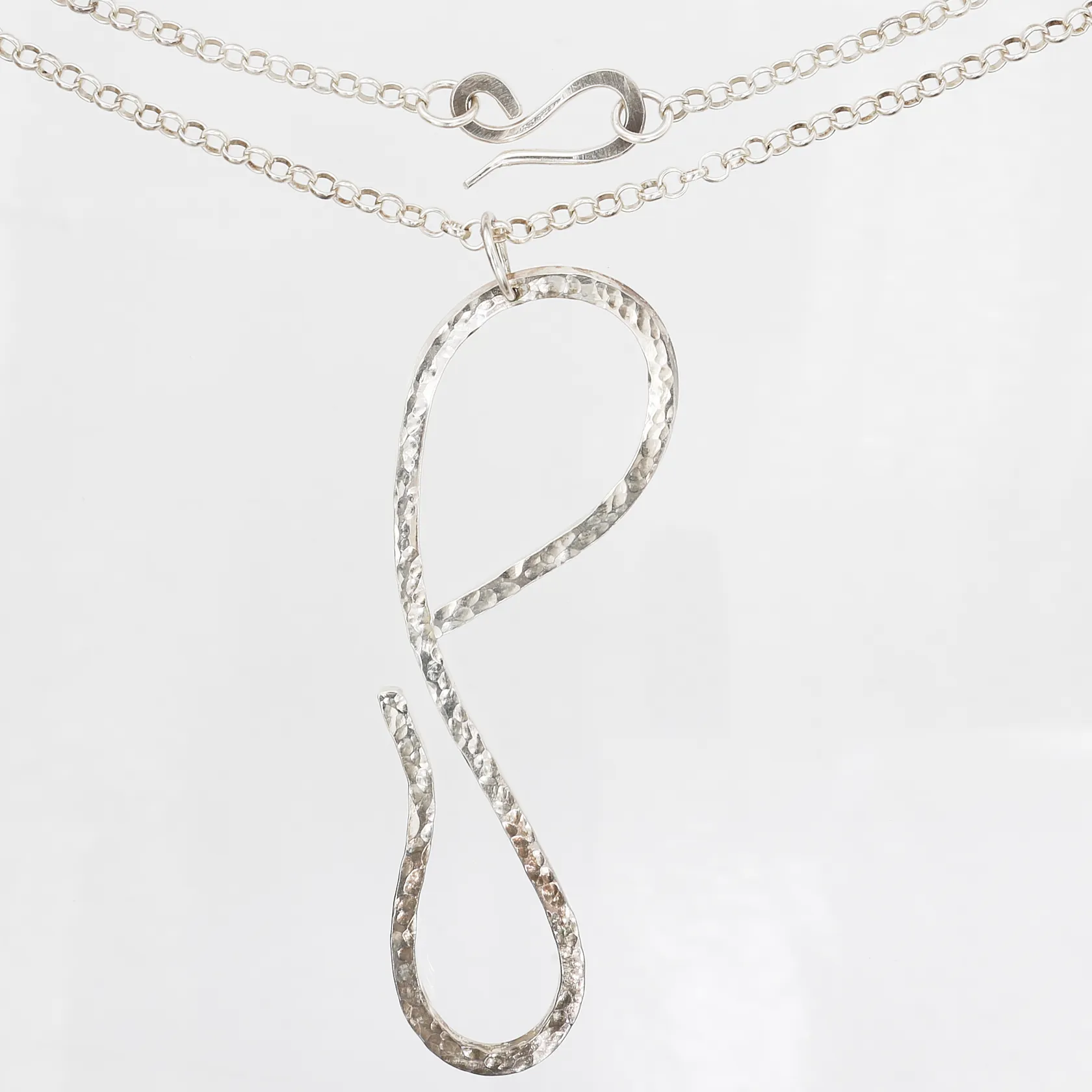 Collier, Ärtlänk, längd: 80 cm, bredd: 4 - 13 mm, höjd på hänge: 105 mm, bredd: 34 mm, 925/1000 silver. Finns för visning på Pantbanken Skärholmen Vikt: 40,5 g.