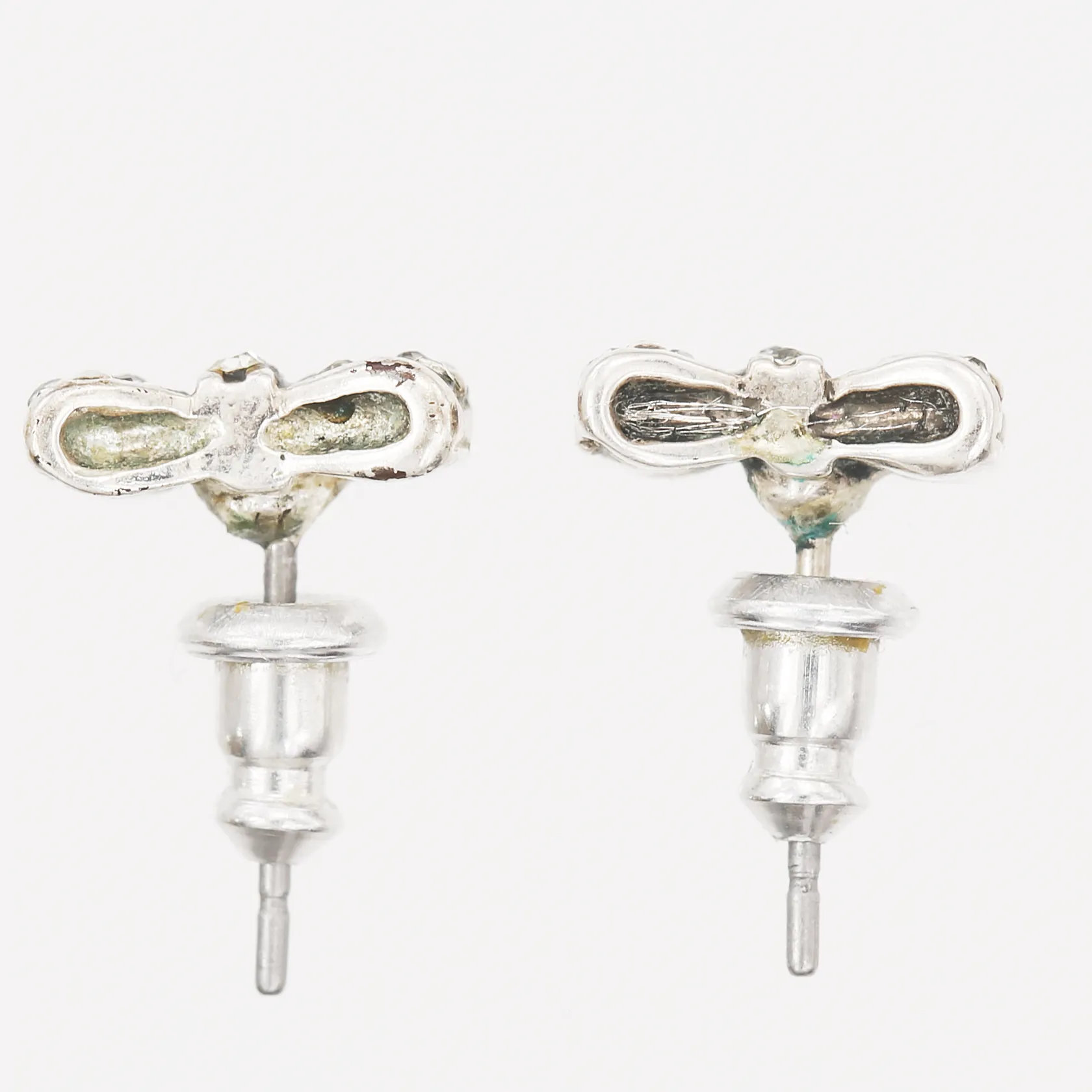 Ett par örhängen med vita stenar i form av rosetter, längd 10mm, höjd 4mm, vitmetall Finns för visning på Pantbanken Skärholmen Vikt: 1,3 g.