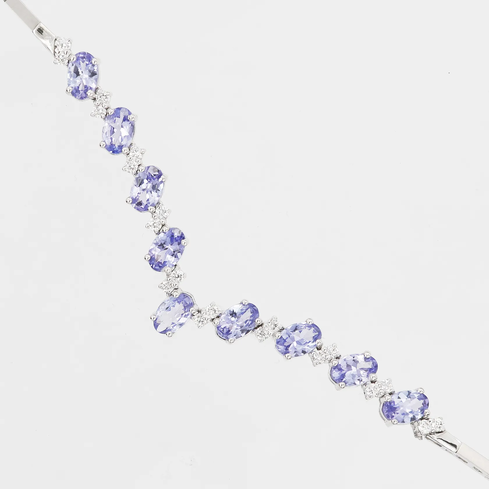 Collier med briljantslipade diamanter 20 x ca 0,02ct, totalt ca 0,40ct och tanzaniter totalt ca 3,50 ct, längd 47cm, tillhörande certifikat,18K vitguld. Finns för visning på Pantbanken Skärholmen Vikt: 17,8 g.