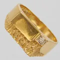 Ring diamant 1 x ca 0,02ct, stl 17¼, bredd 2,5-9mm, skev skena, repig, 18K Vikt: 5 g.