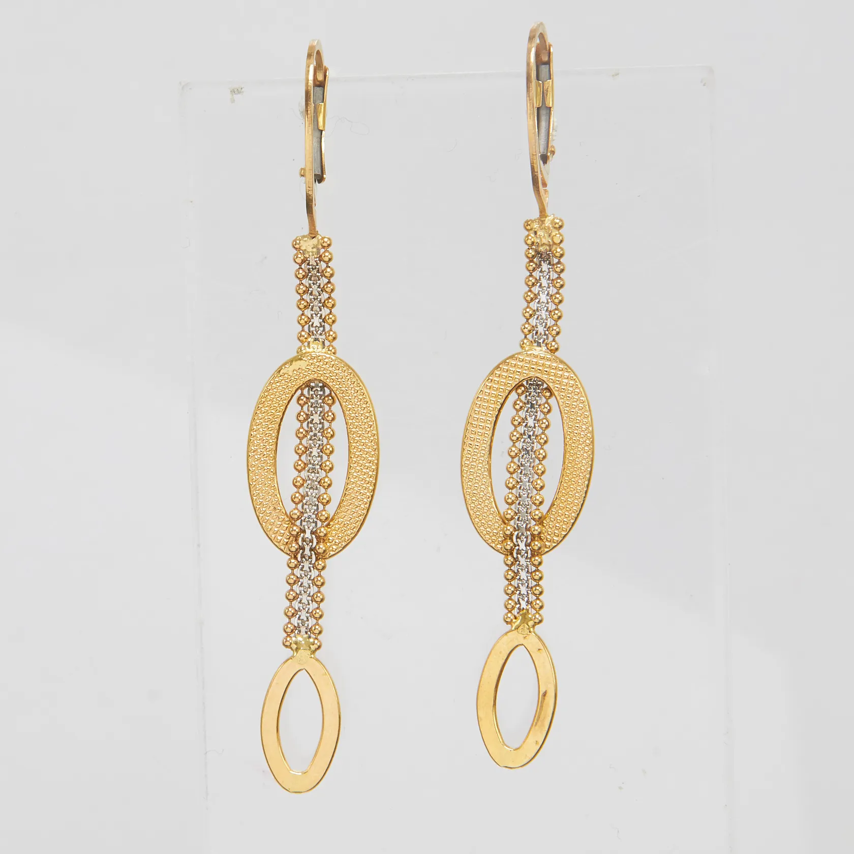Ett par örhängen, längd ca 70mm, bredd 2-12,5mm, tvåfärgade, 18K Vikt: 4,6 g.