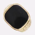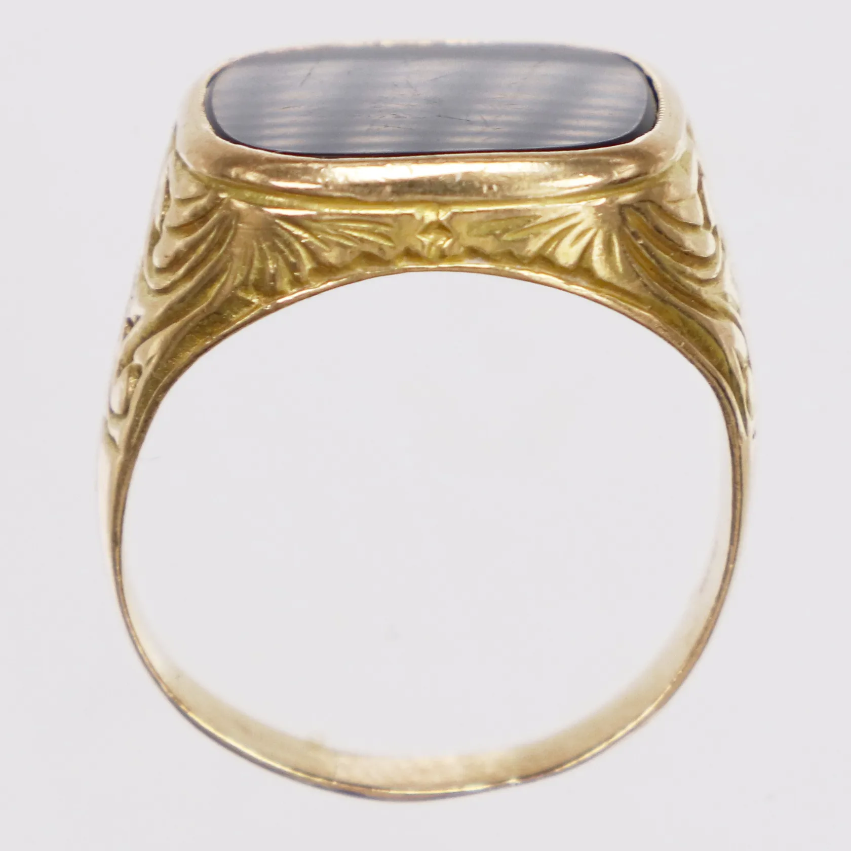 Klackring svart sten, stl 20¼, bredd 3,5-16,2mm, skev, repig, 18K Vikt: 8,8 g.