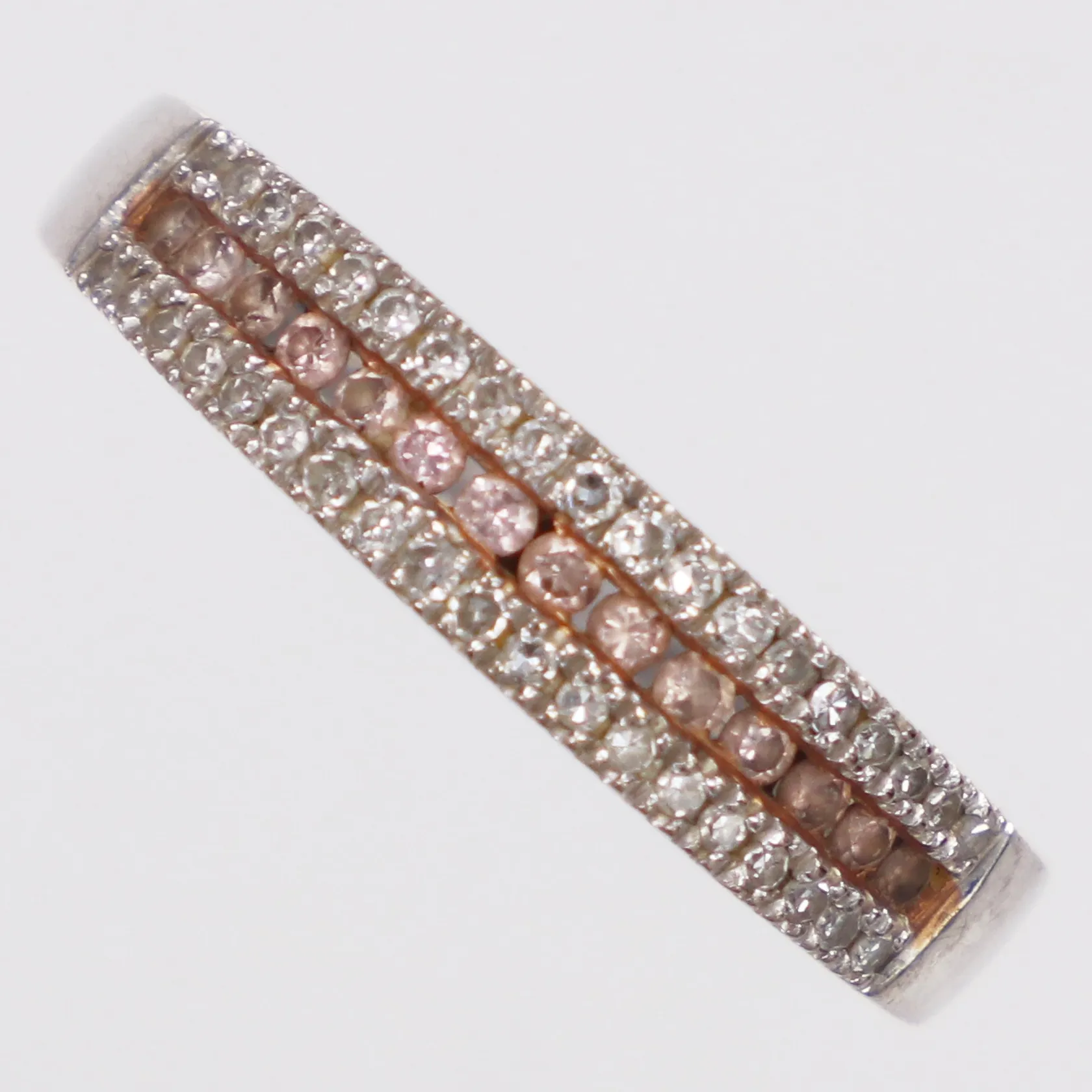 Ring diamanter 14xca0,01ct+38xca0,005ct, stl 17, bredd 2,5-4,2mm, GHA, vitguld, 18K Vikt: 4,6 g.