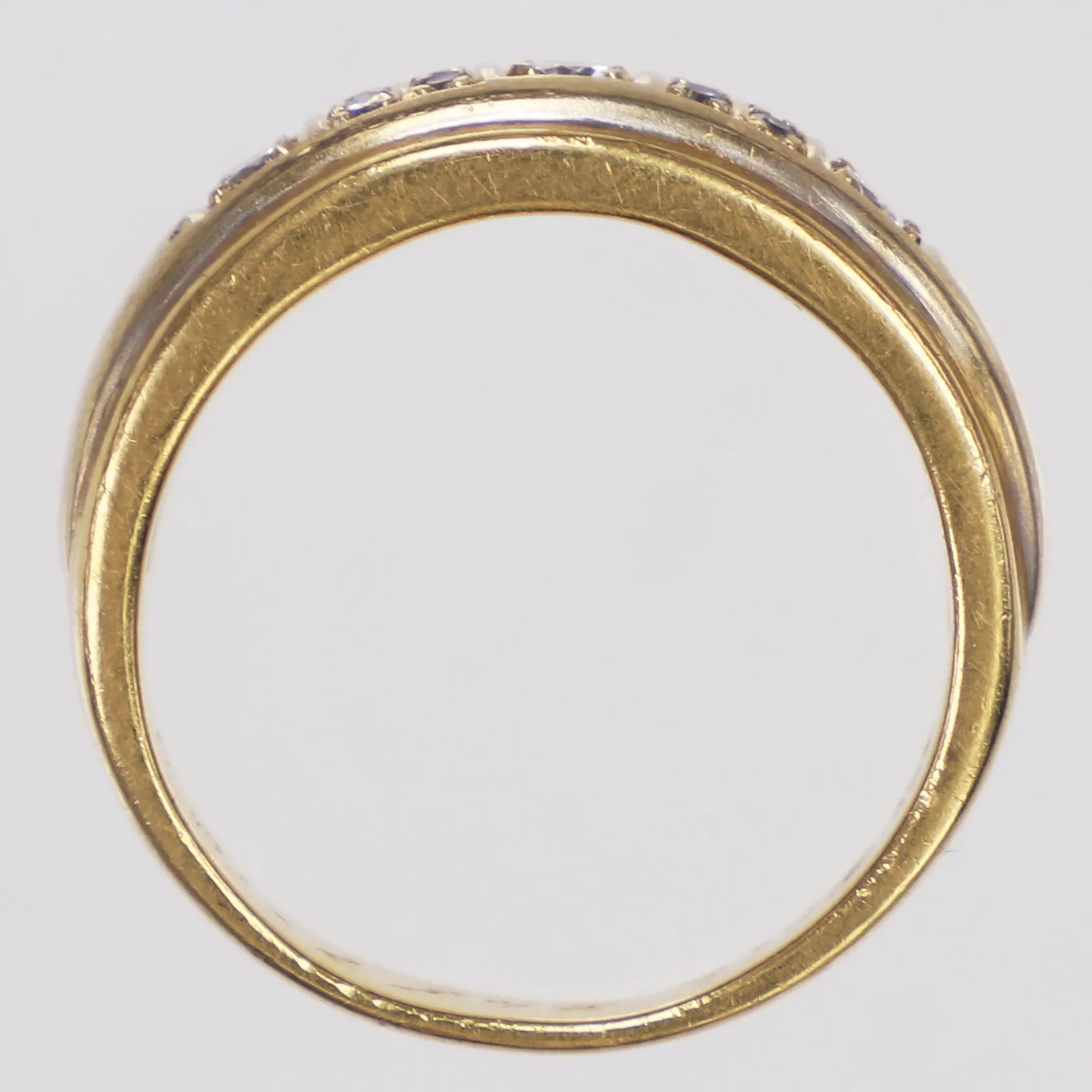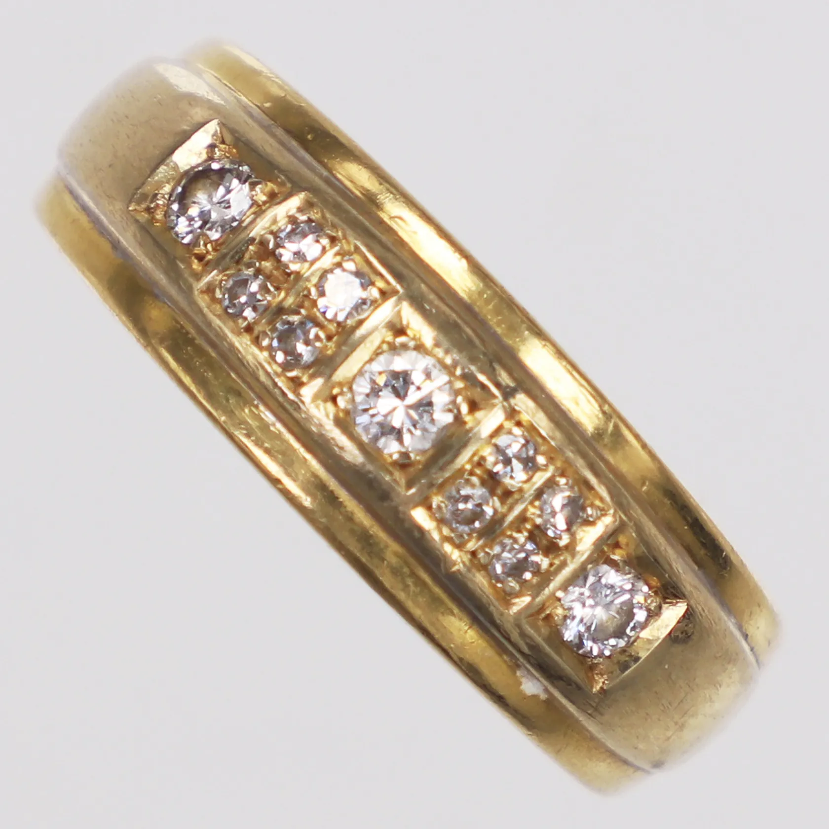 Ring diamanter 3 x ca0,05ct + 8 x ca0,01ct, stl 17¼, bredd 5-7mm, 18K Vikt: 7 g.