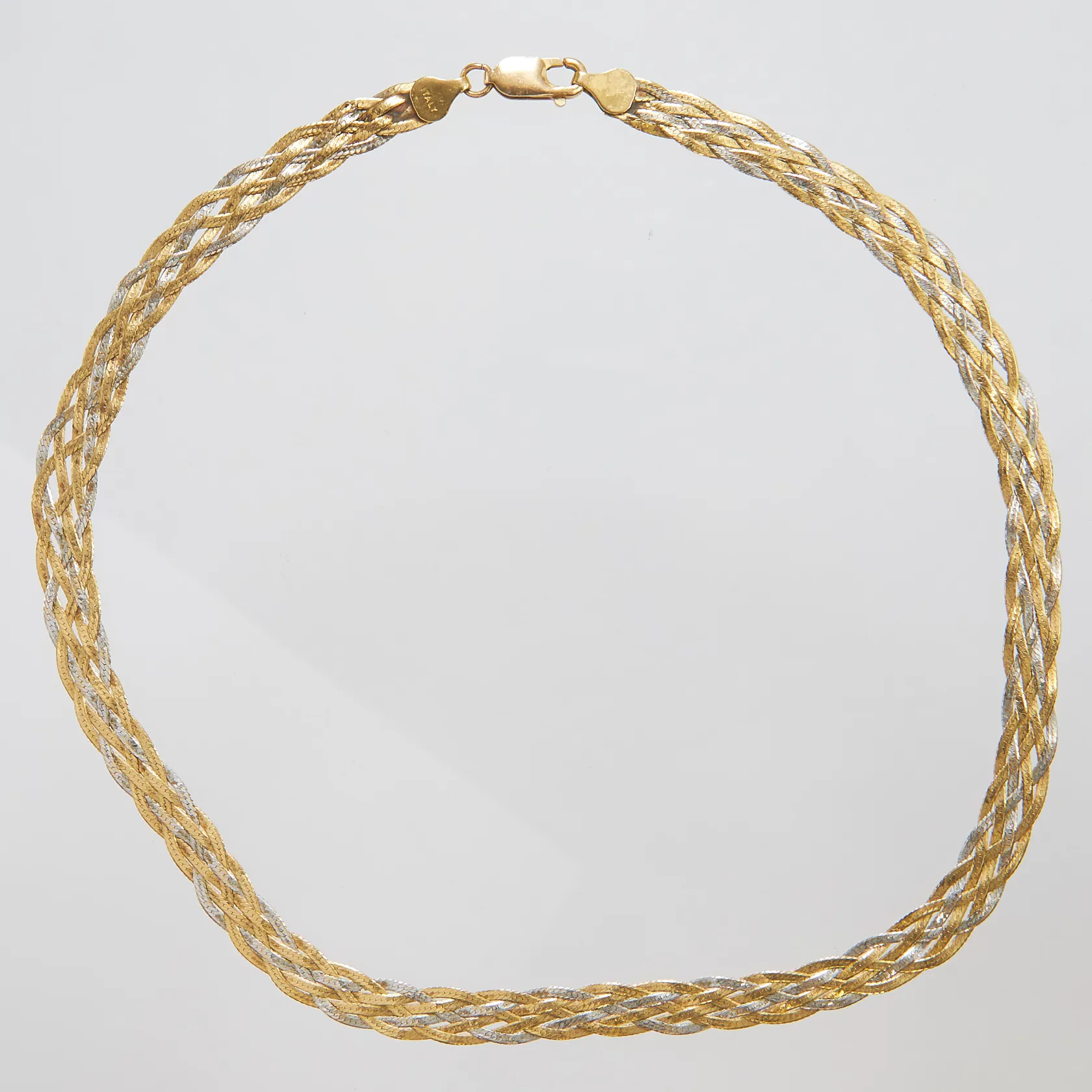 Collier, flätad, längd ca 40,5cm, bredd 7mm, tvåfärgad, 18K Vikt: 14,8 g.