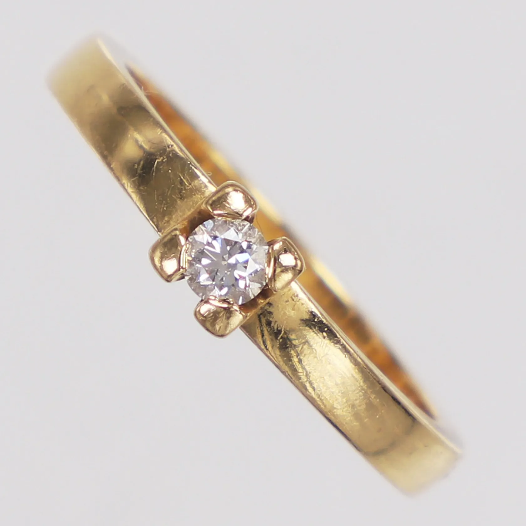 Ring diamant 0,10ct enligt gravyr, Engelbert, stl 16½, bredd 2,4-4,2mm, 18K Vikt: 3,5 g.
