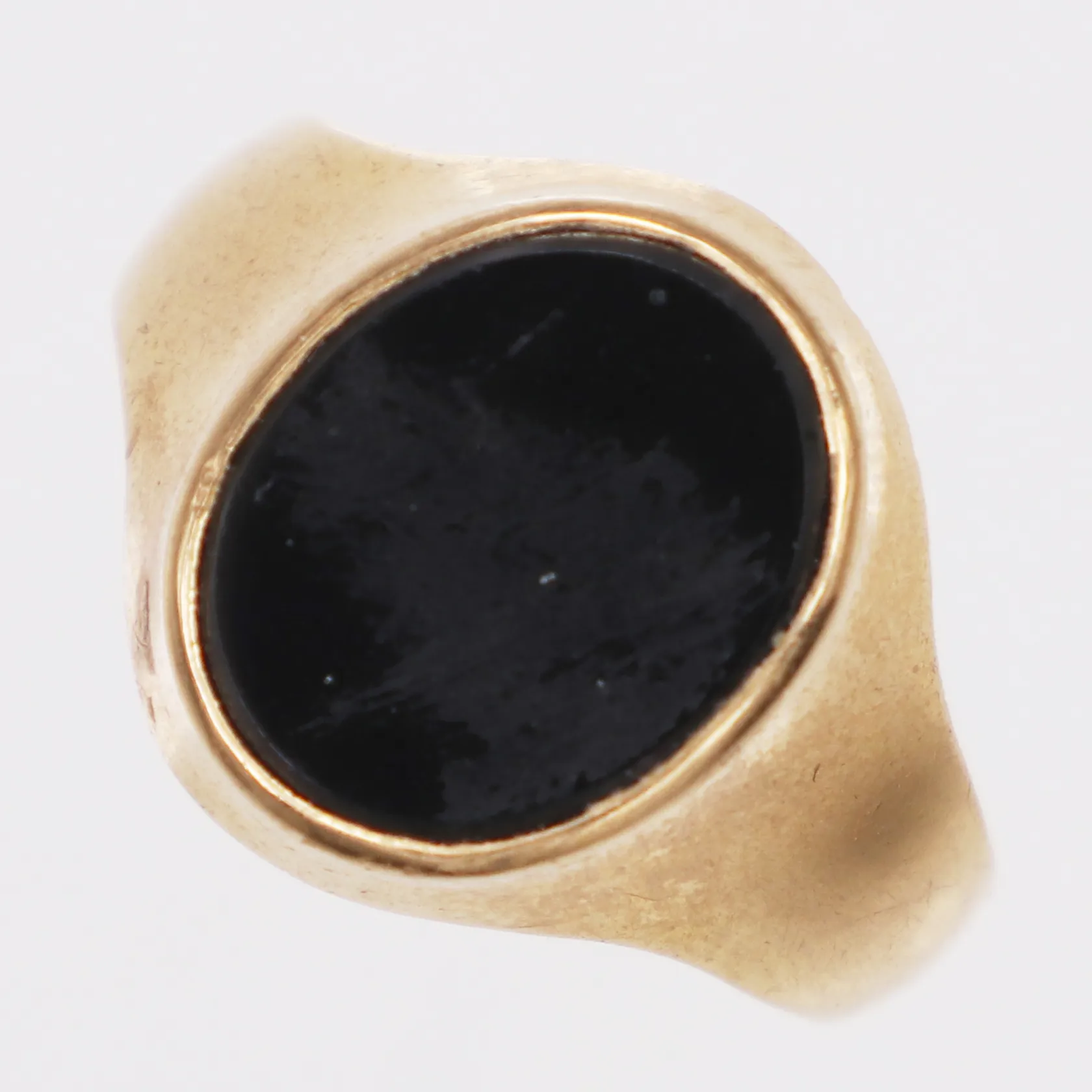 Klackring svart sten, stl 17¼, bredd 4-15mm, skev, 18K, bruttovikt 4,2g Vikt: 4,2 g.