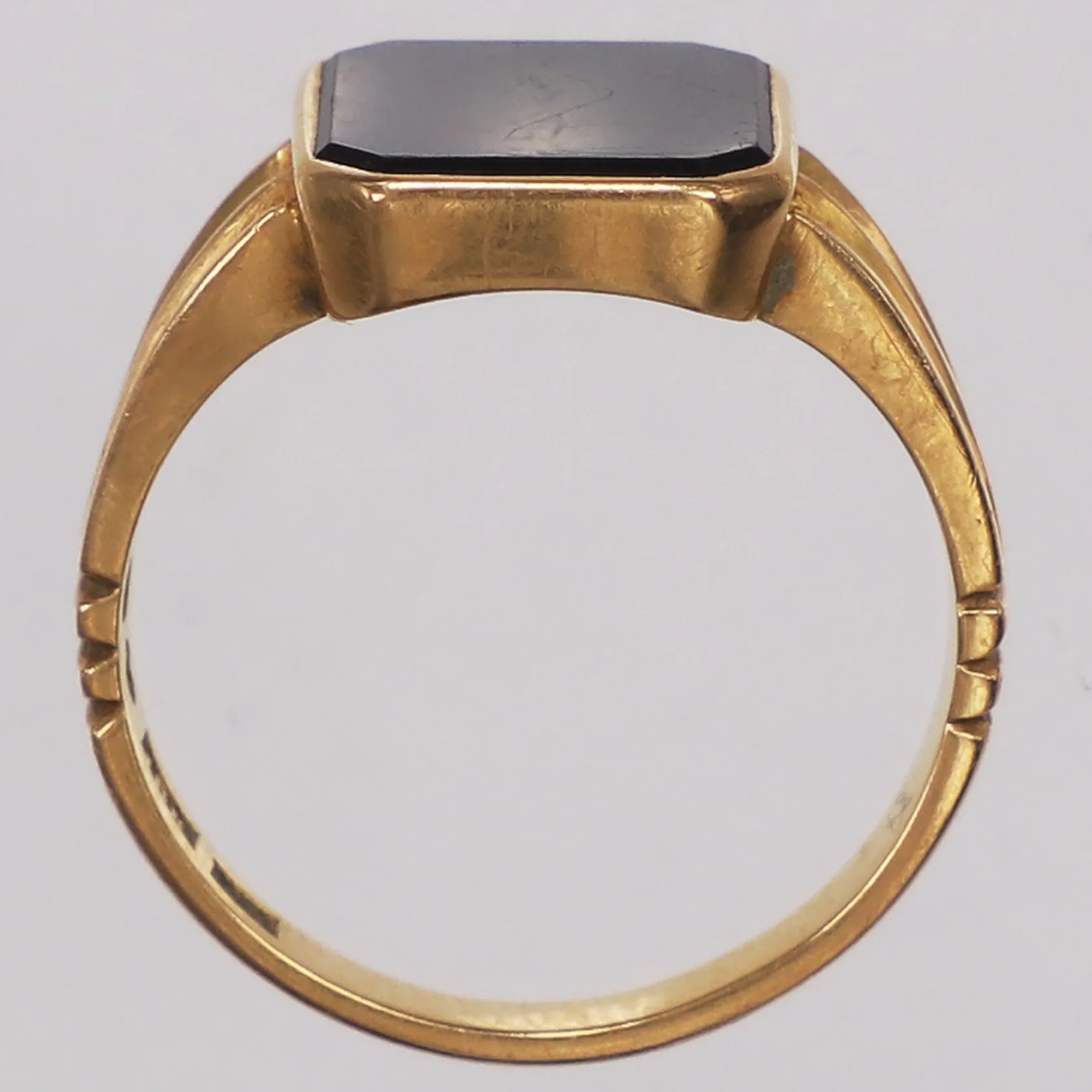 Klackring onyx, Johanssons Guldsmedsverkstad, stl 21½, bredd 3-14,6mm, 18K Vikt: 8,1 g.