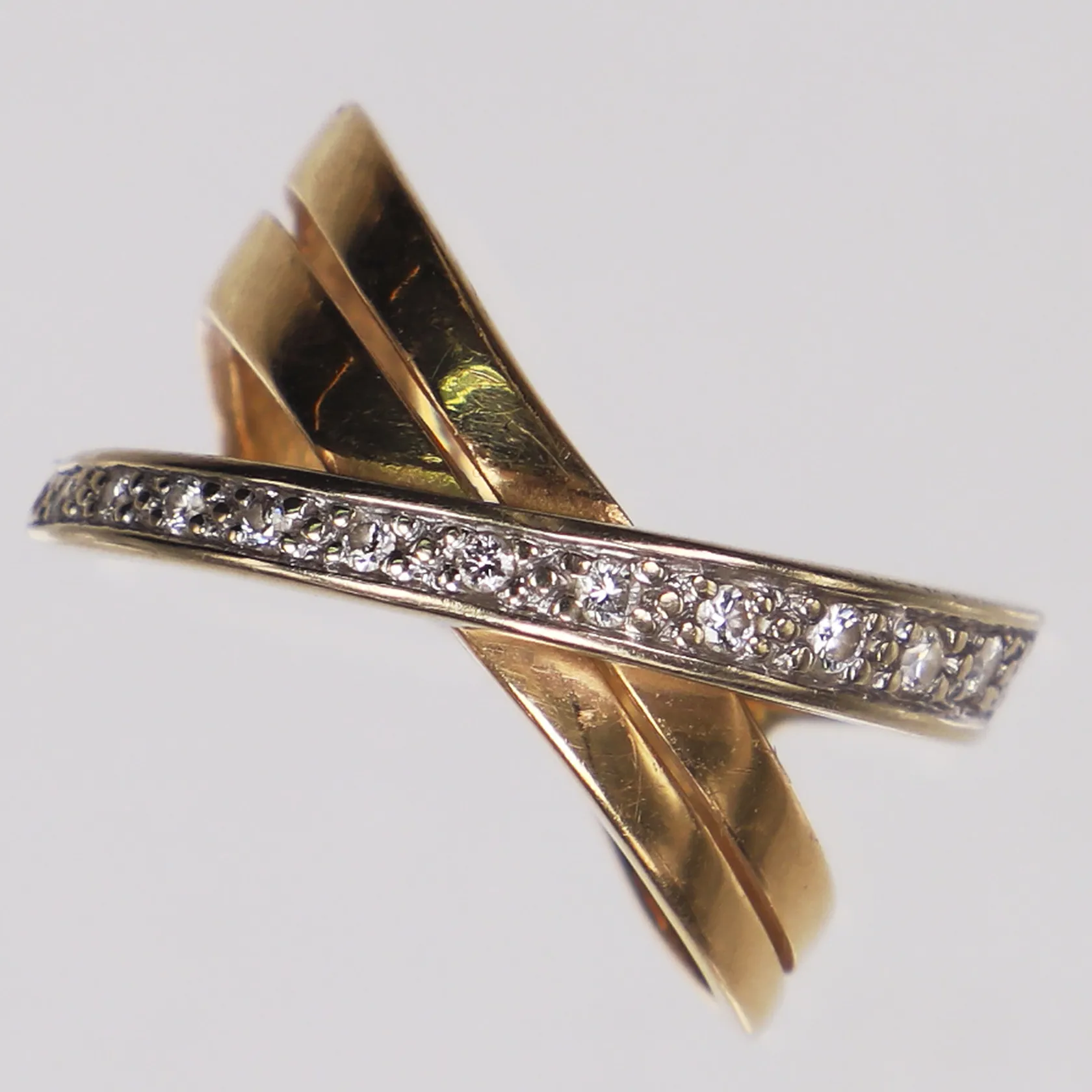 Ring diamanter 13 x ca0,01ct, Guldfynd, stl 16¼, bredd 3,4-11,6mm, repor, 18K Vikt: 4,5 g.