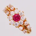 Ring röd & vita stenar, stl 17¾, 22K Vikt: 3,6 g.
