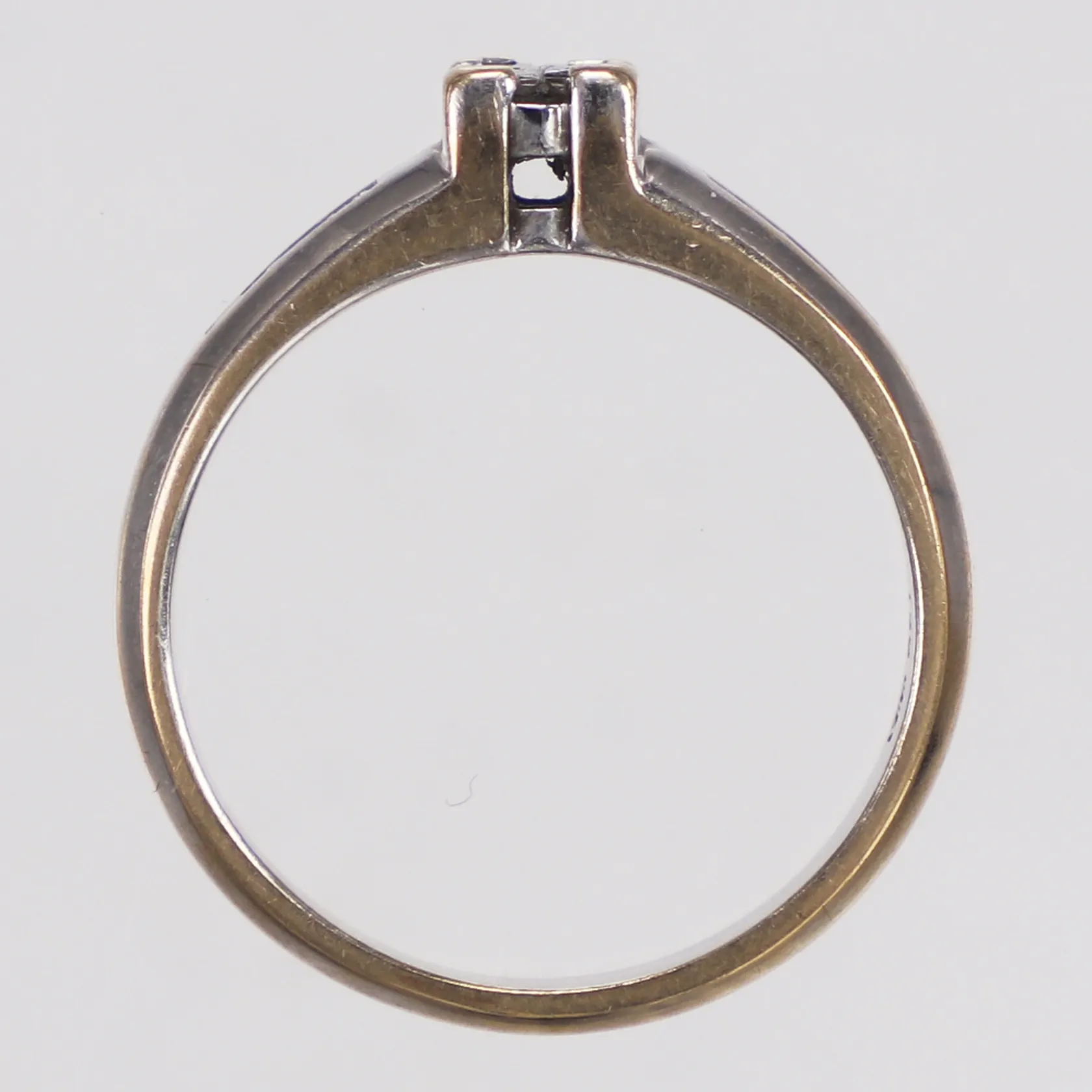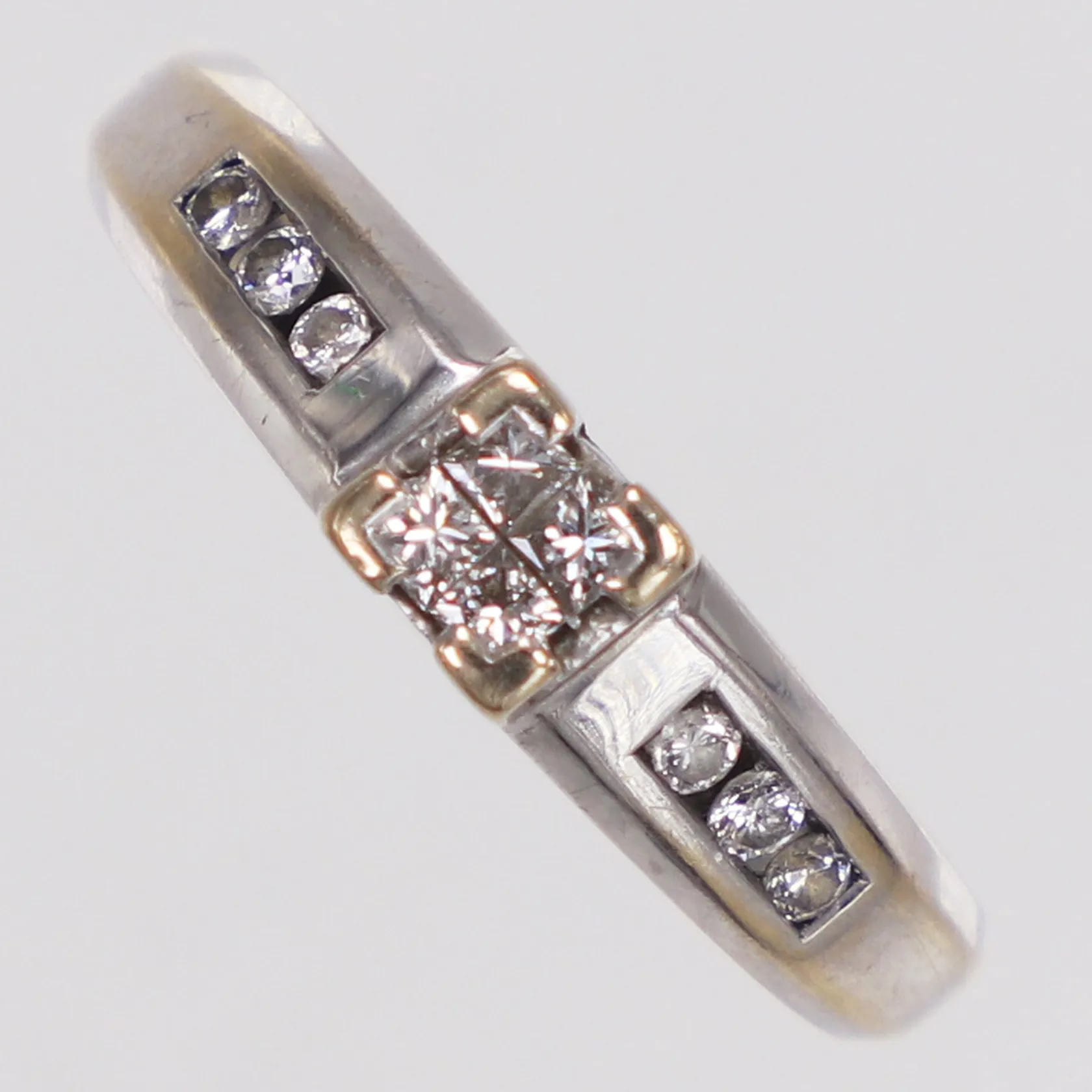 Ring diamanter 6 x ca0,02ct briljantslipade + 4 x ca0,025ct princesslipade, Guldfynd, stl 16¾, bredd 2,4-4,3mm, vitguld, omrodinering behövs, 18K Vikt: 3,9 g.