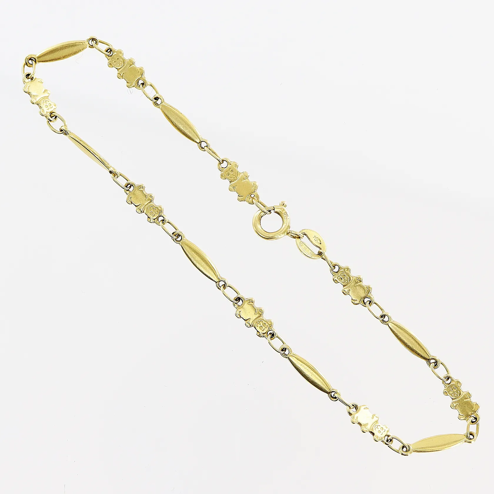 Barnarmband, nallebjörnar, 18,5cm, bredd 2,5-3,5mm, lås i behov av översyn, 18K Vikt: 4,1 g.