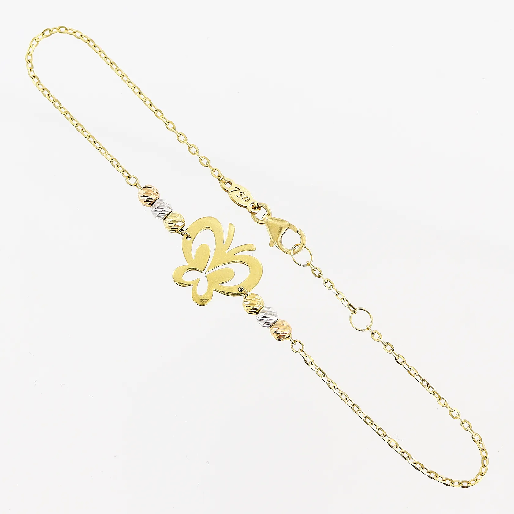 Armband fjäril, 17cm/18,5cm, bredd 0,5-11,5mm, 18K Vikt: 1,9 g.