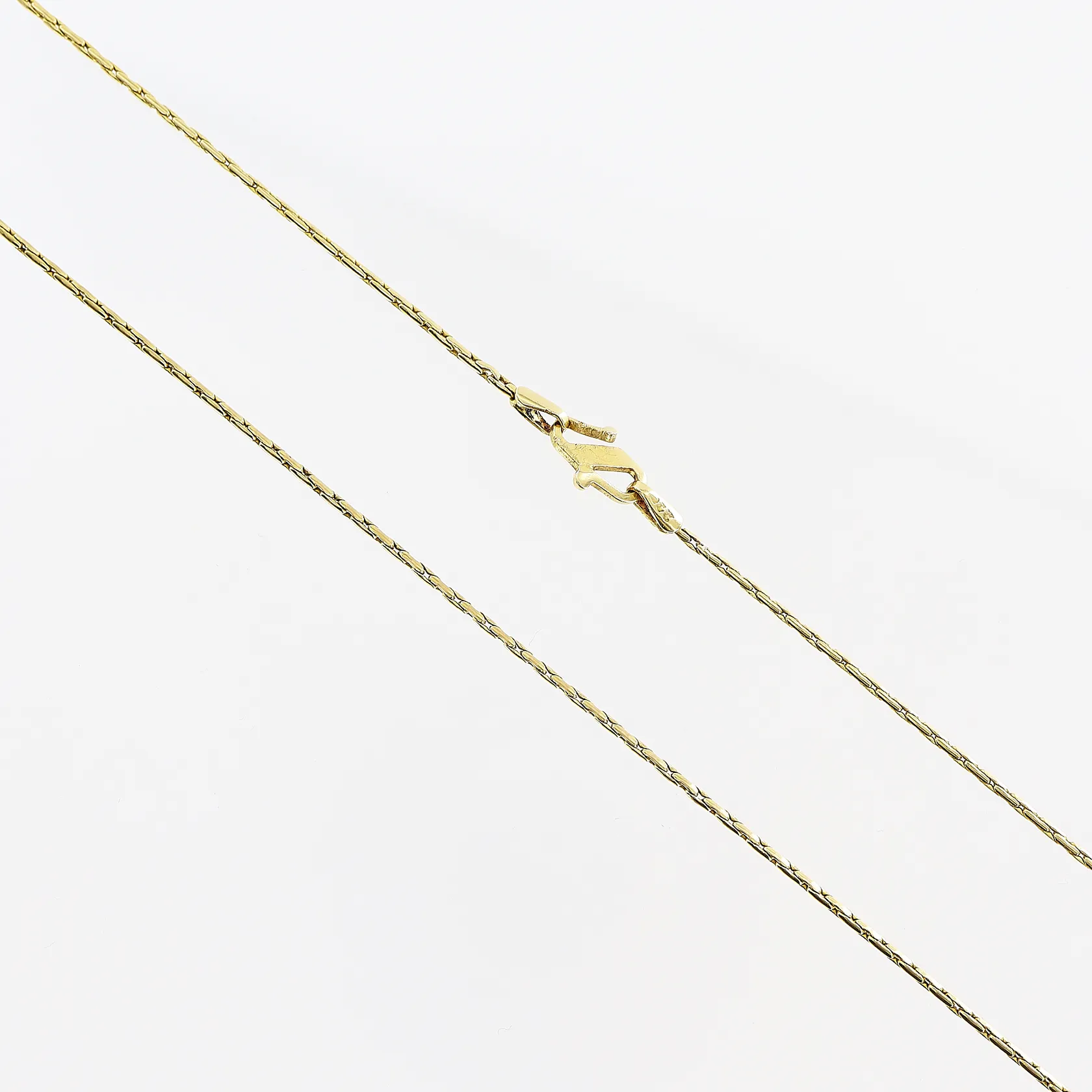 Kedja, 49cm, bredd 1mm, halvstel, S-lås, skevheter, 22K. Vikt: 5 g.