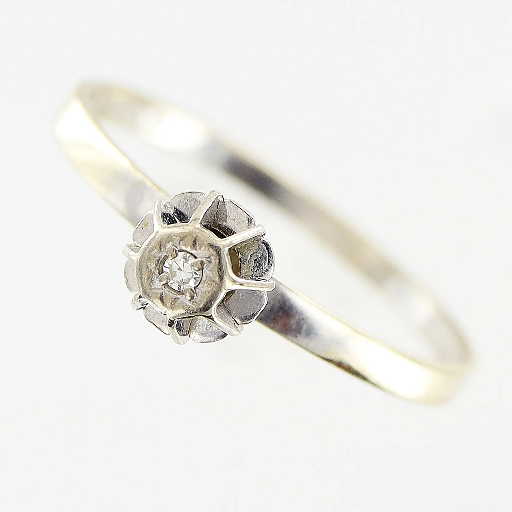 Ring, diamant ca 0,01ct, stl 17, bredd 1,5-5mm, vitguld, 18K. Vikt: 1,1 g.