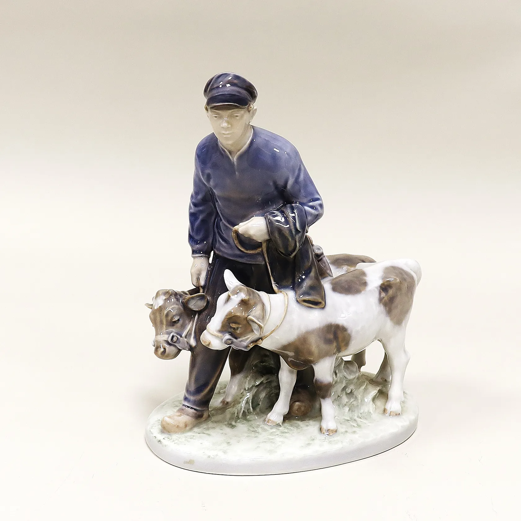 Figurin Royal Copenhagen, nr 1858 pojke med kalvar, 23x18cm, Danmark. Skickas med postpaket.