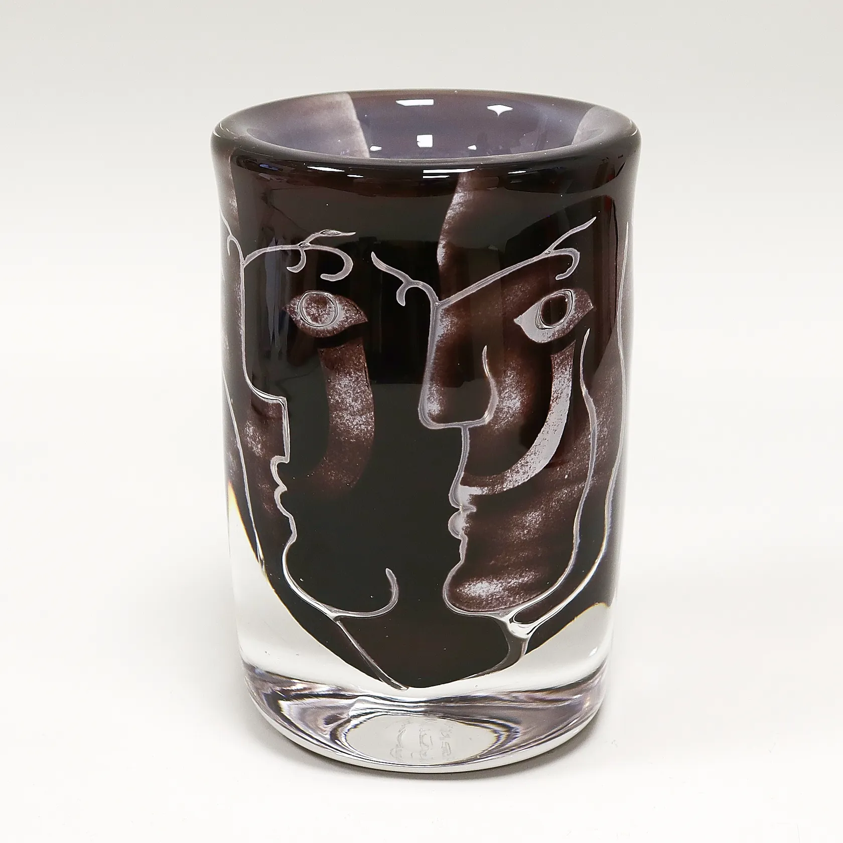 Vas Ingeborg Lundin, "ansikten" ariel, signerad: Orrefors C.Ariel Nr 16.461.E5.I. Ingeborg Lundin, repor, 18cm, Ø12cm.