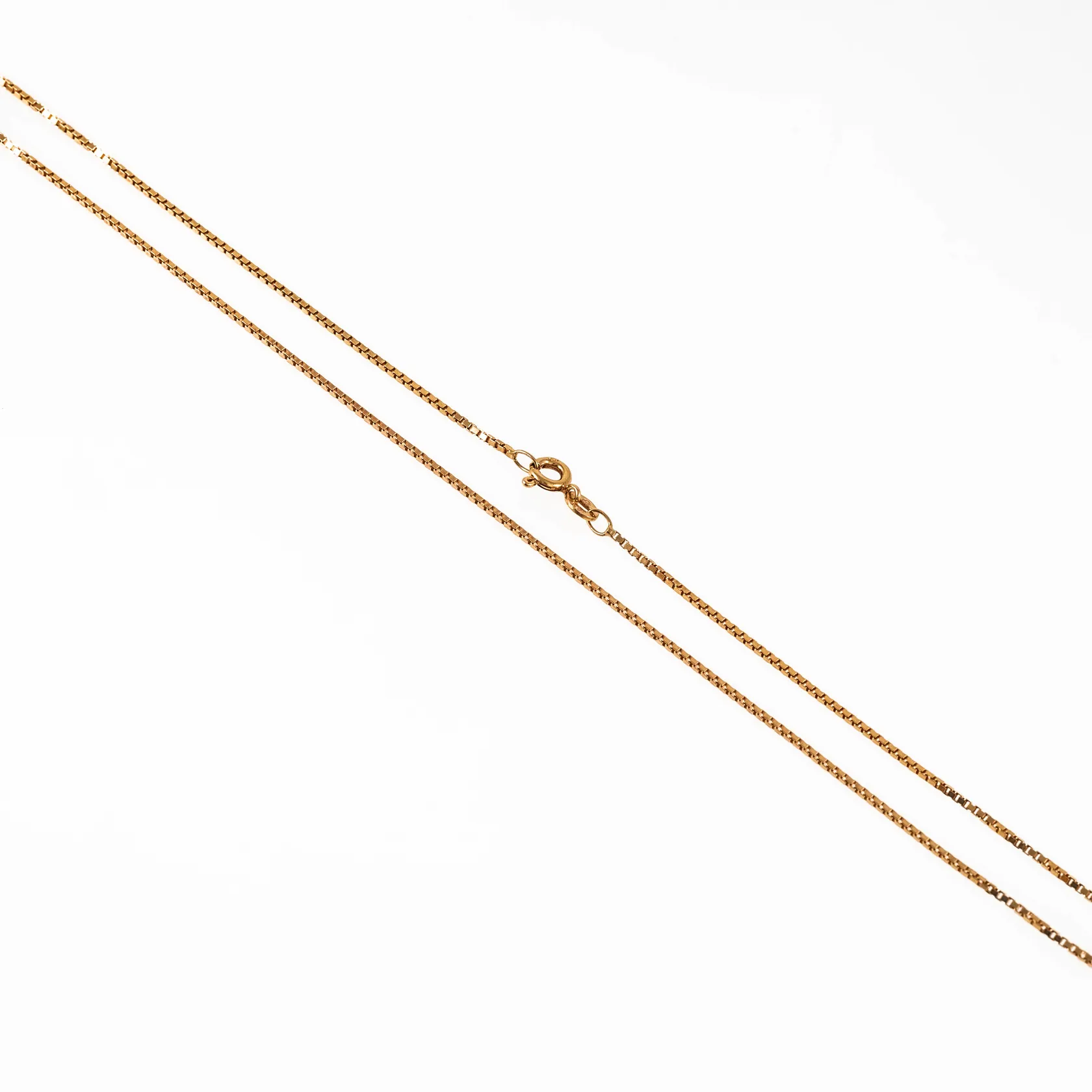 Kedja venezia i 18K guld. Den är 39 cm lång, 1 mm bred och väger 3,7g. Springring. Vikt: 3,7 g.