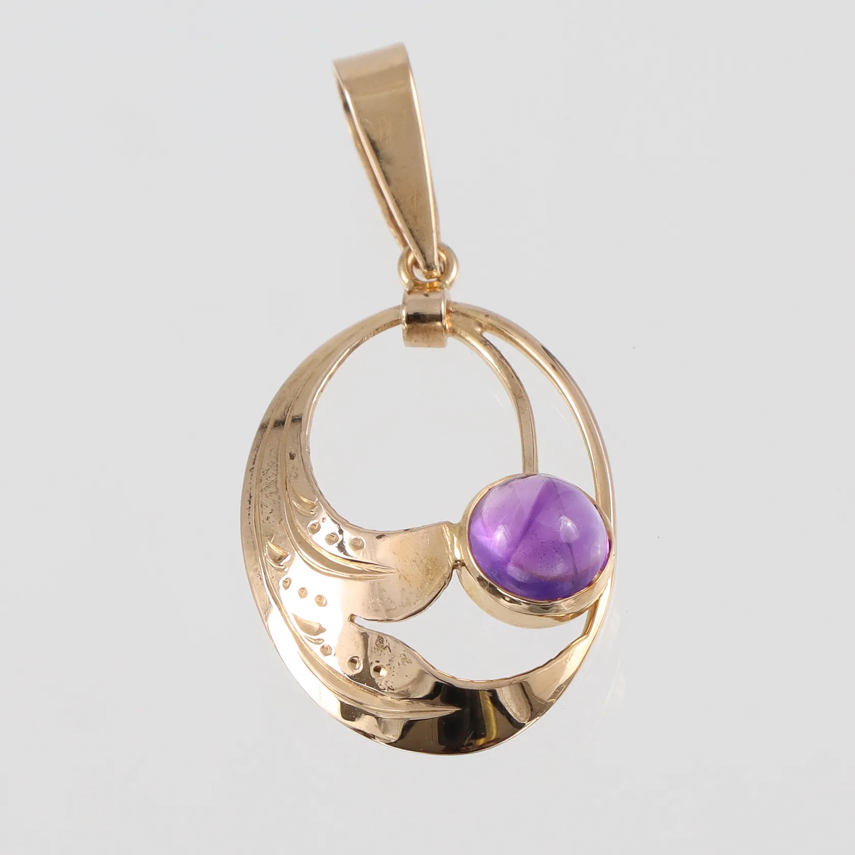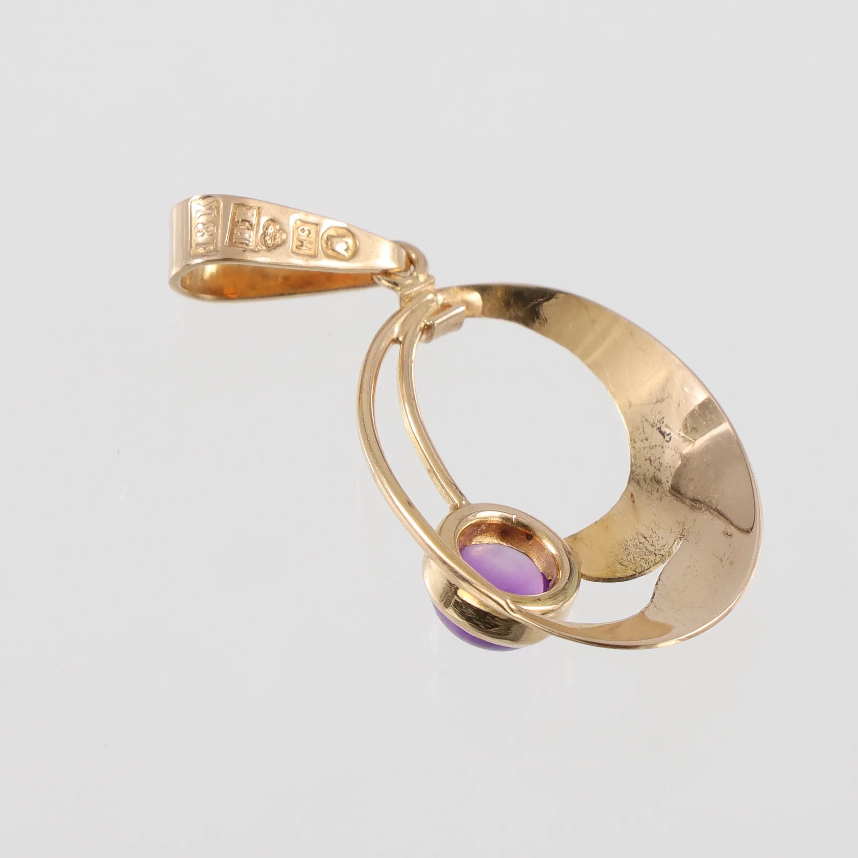 Hänge med lila sten 18k, höjd utan ögla ca 19mm Vikt: 1,1 g.