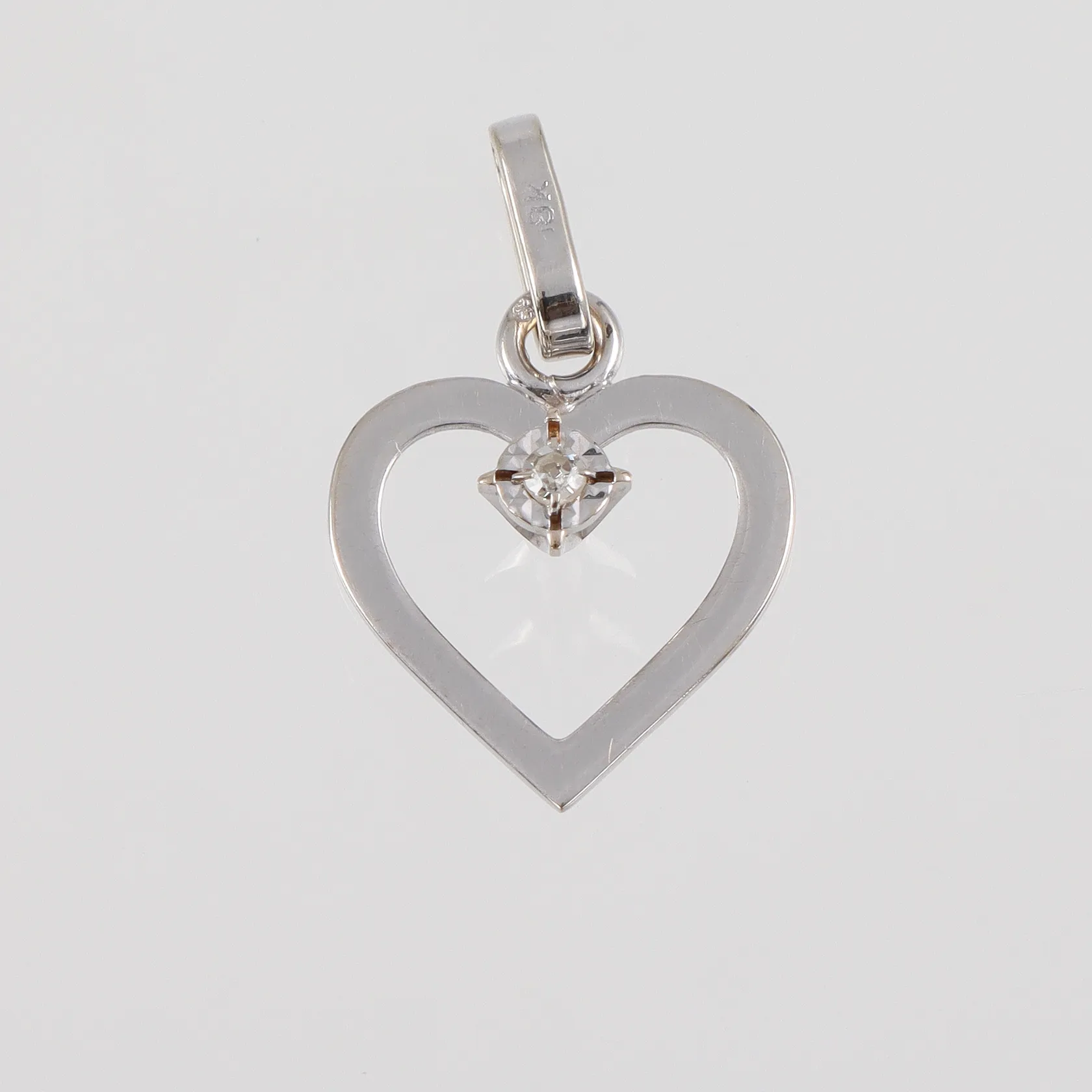 Hänge " Hjärta med diamant ca 0,02ct 18k vitguld, höjd 14mm Vikt: 0,7 g.