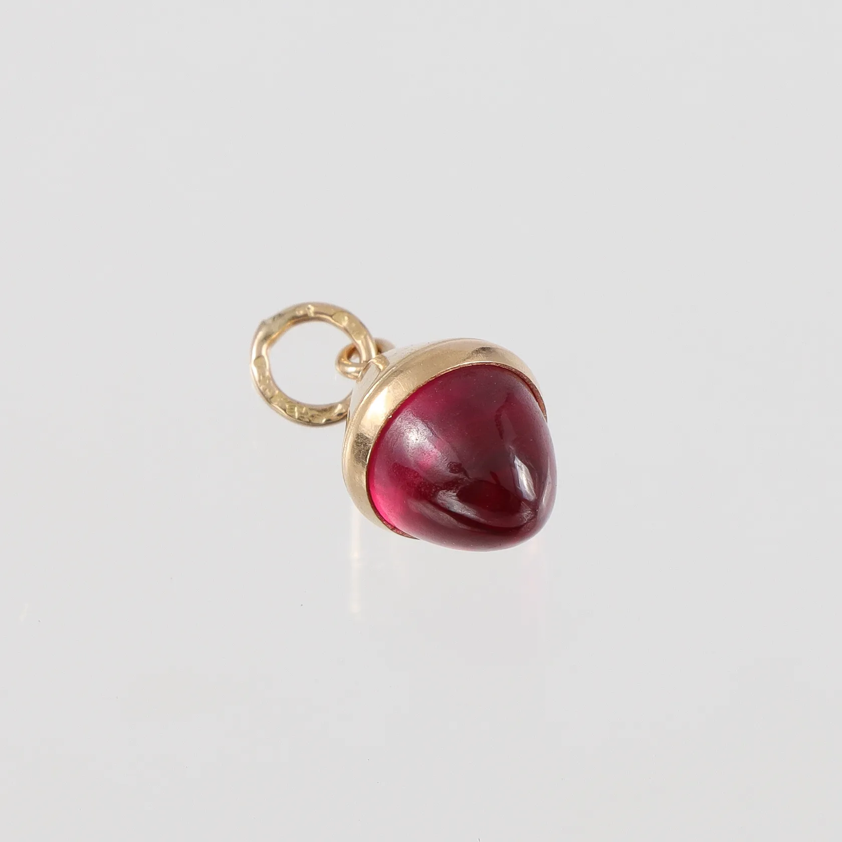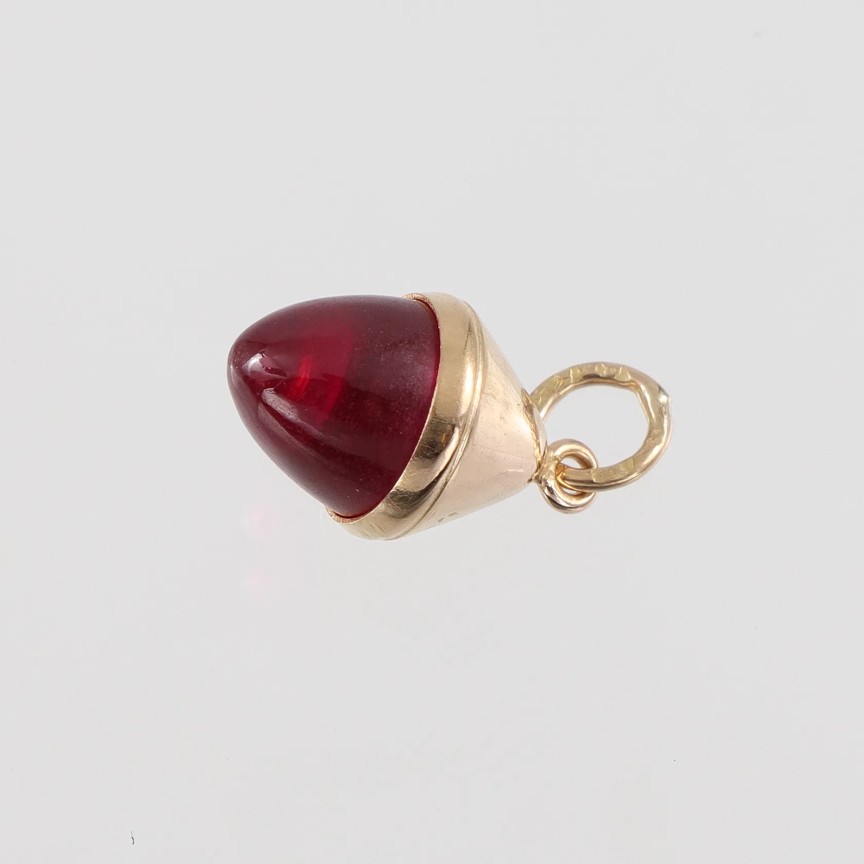 Berlock med röd konformad sten 18k, höjd ca 12mm Vikt: 1 g.