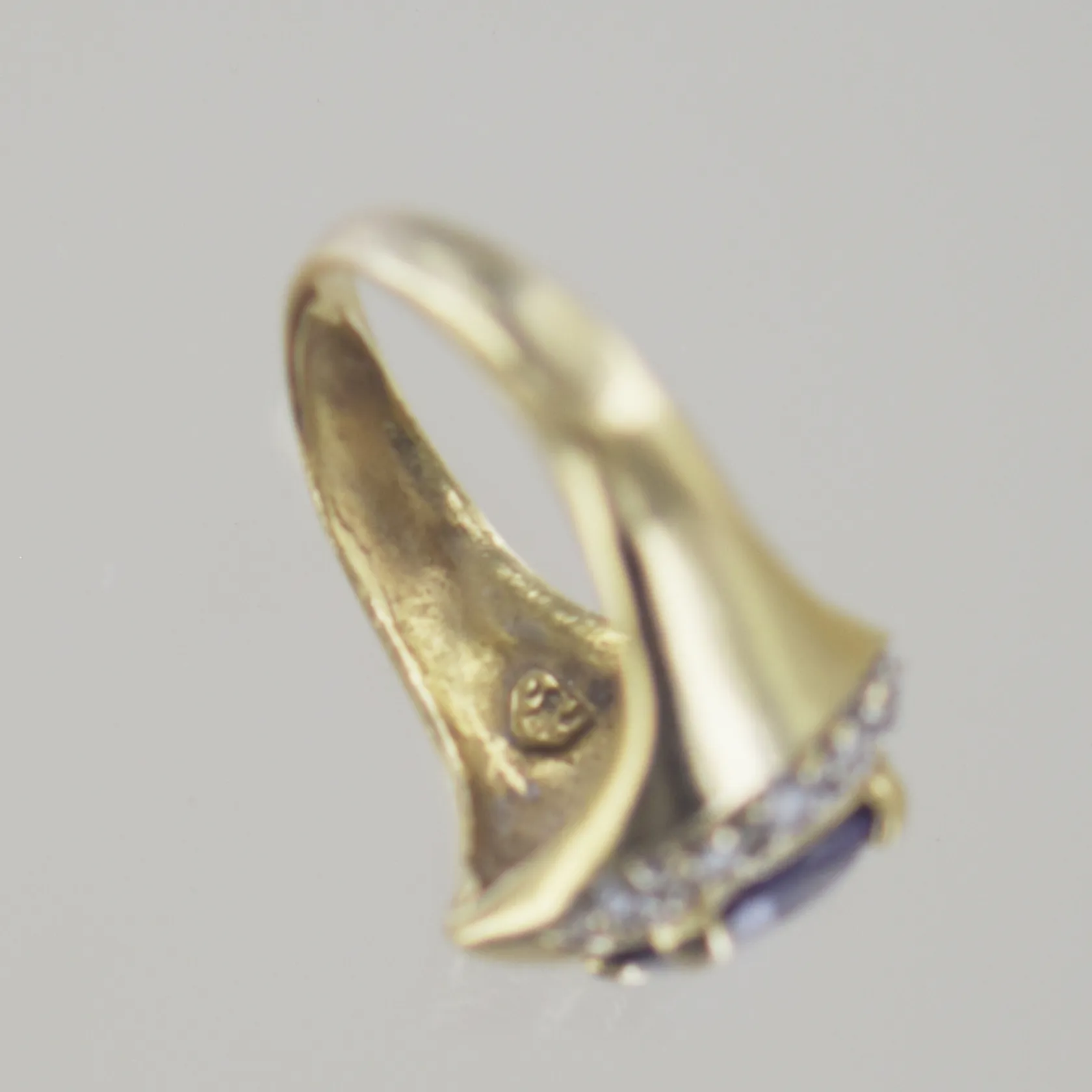 Ring med stenar, Ø 21 mm, defekt sten, höjd 18 mm, 18K Vikt: 9,9 g.