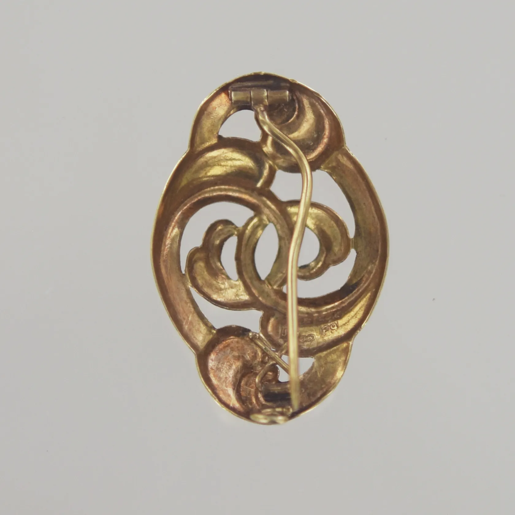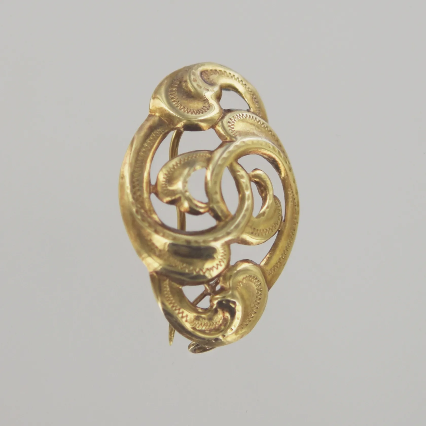 Brosch, längd 3 cm, bredd 2 cm, ojämn nål,18K Vikt: 2 g.