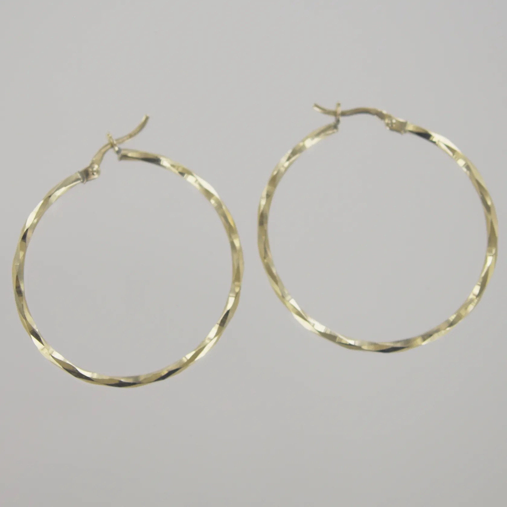 Ett par örhängen, diam 3 cm, bredd 1,6 mm, 9K Vikt: 1,7 g.