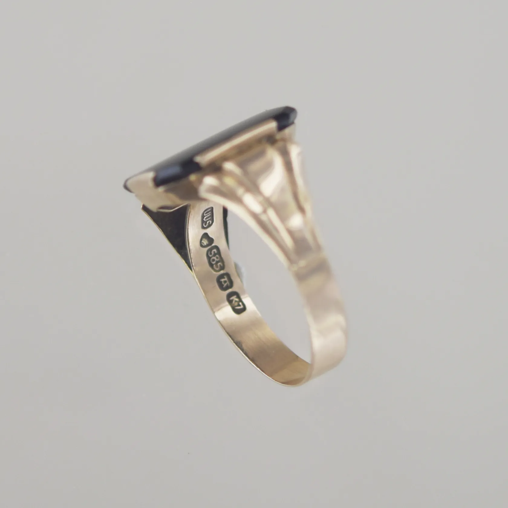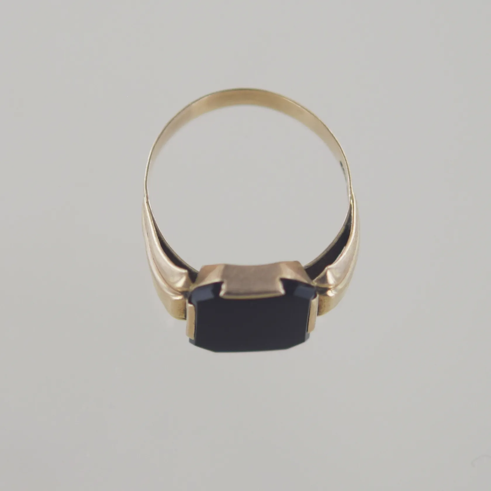 Ring med sten, Ø 20¼ mm, bredd 16,5 mm, små bucklor, 14K Vikt: 3,8 g.