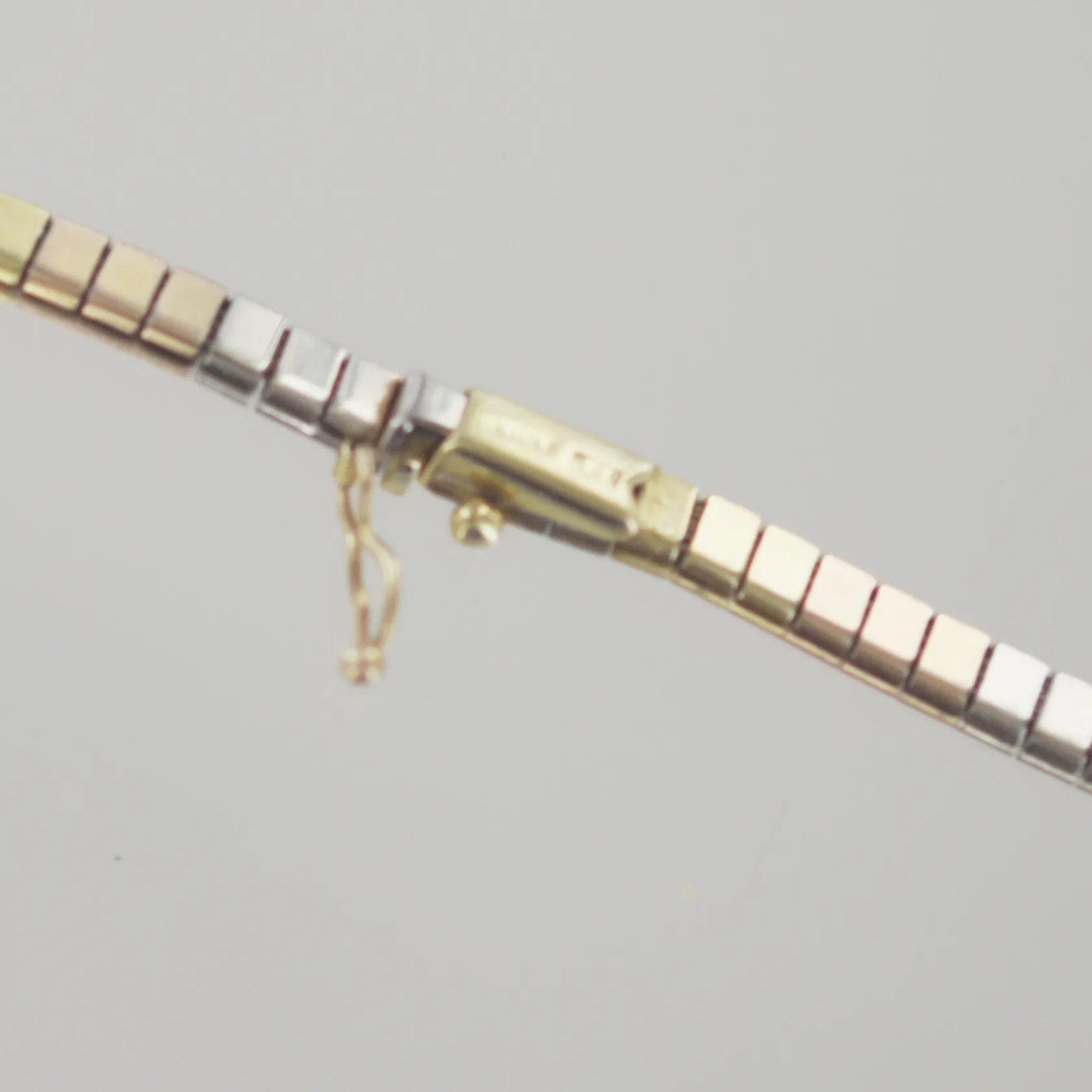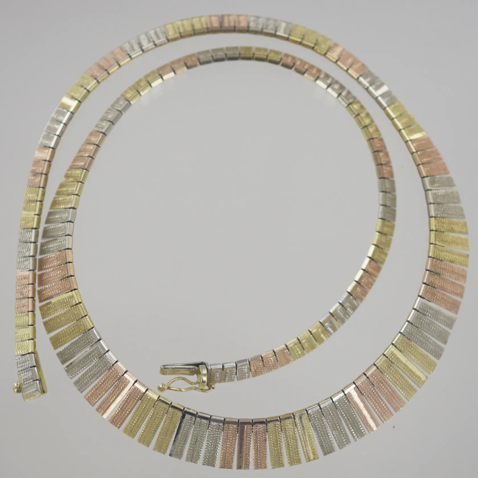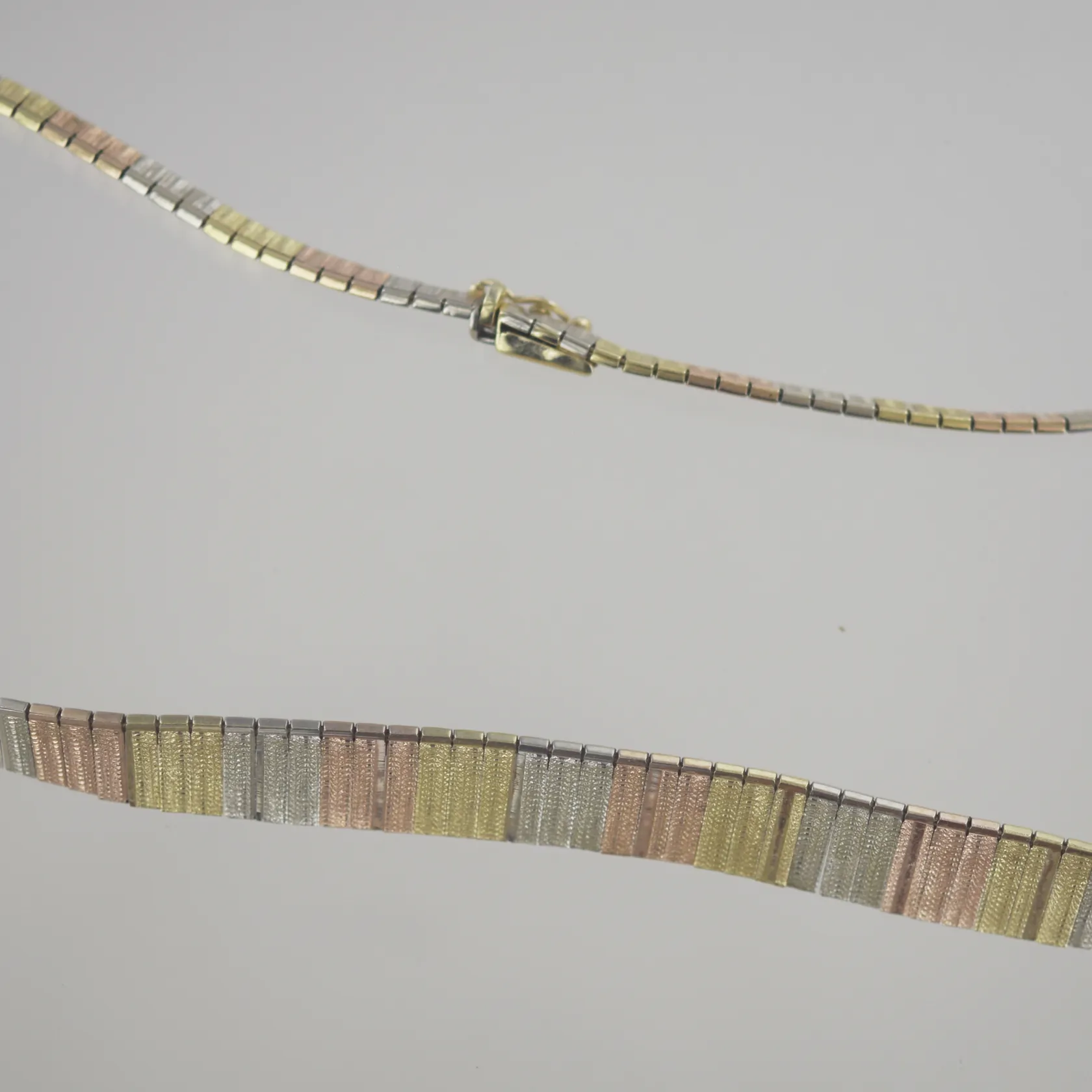 Collier 3 färger, längd 42 cm, bredd 4-10 mm, 14K Vikt: 26,2 g.
