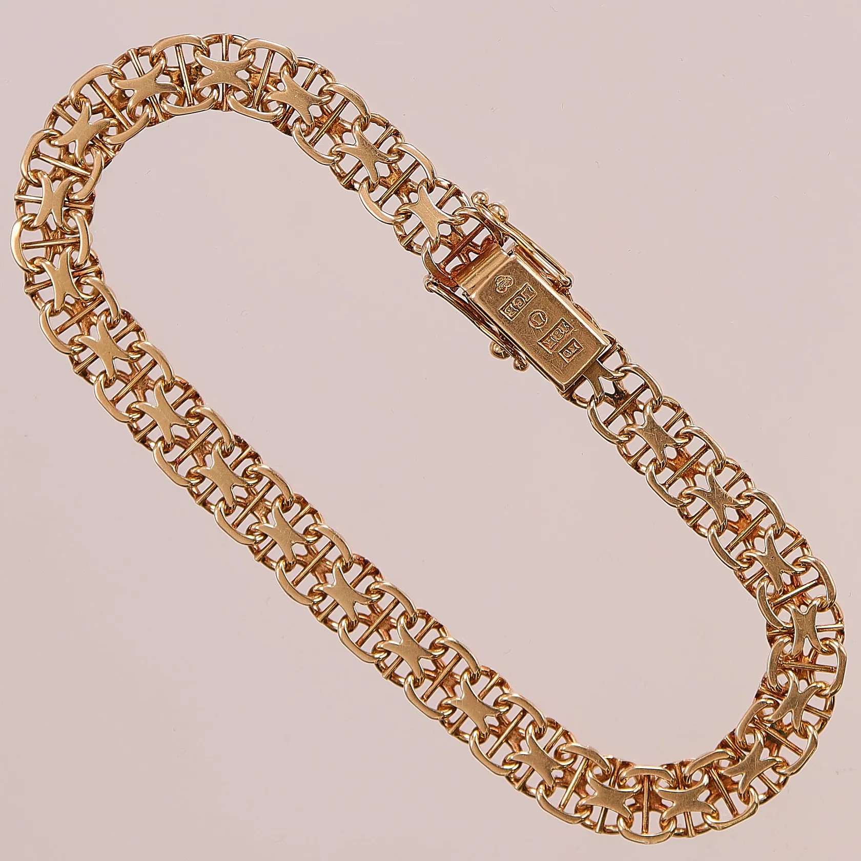 Armband X-länk med stav, 20cm, bredd 6,8mm, 18K, 14,1g. Vikt: 14,1 g.