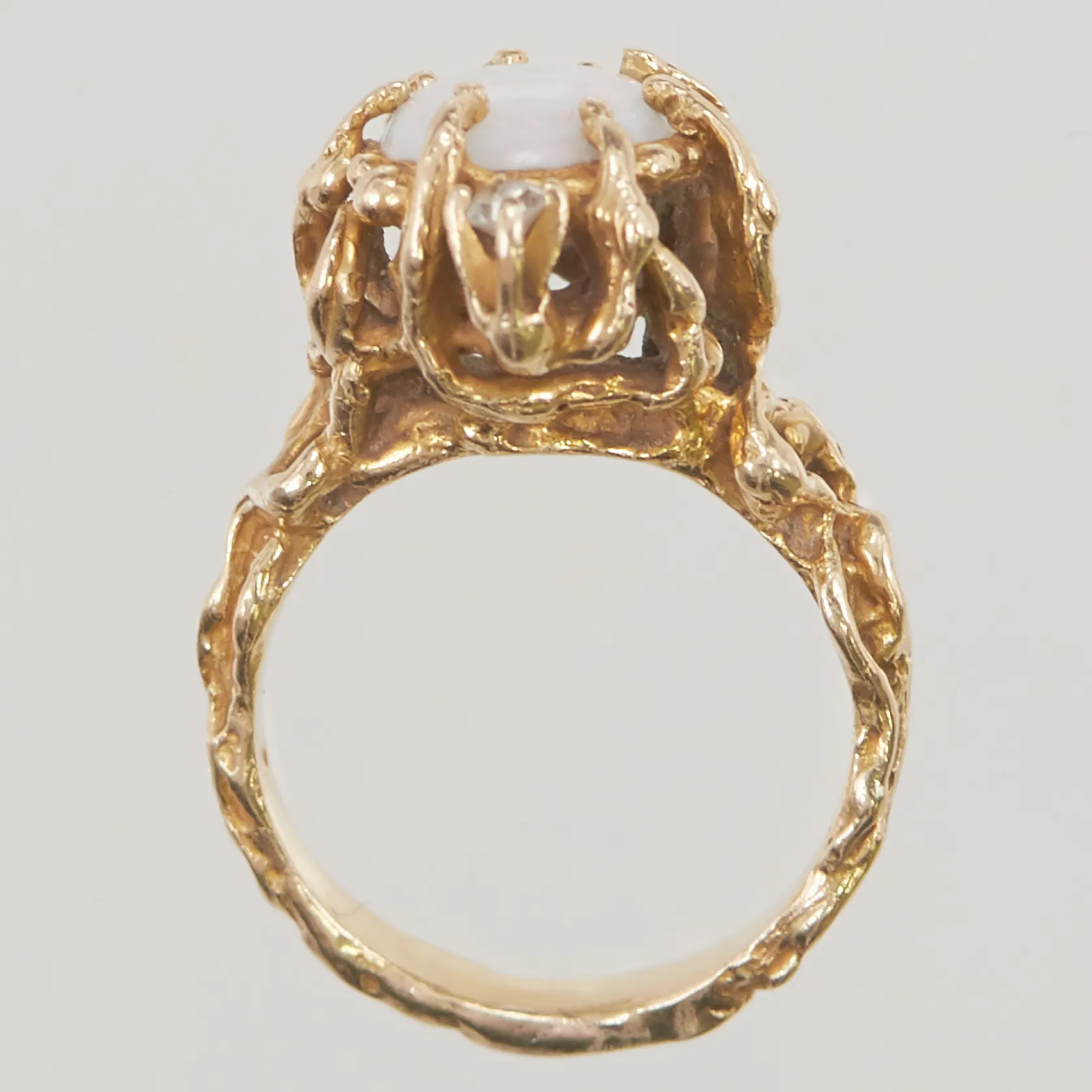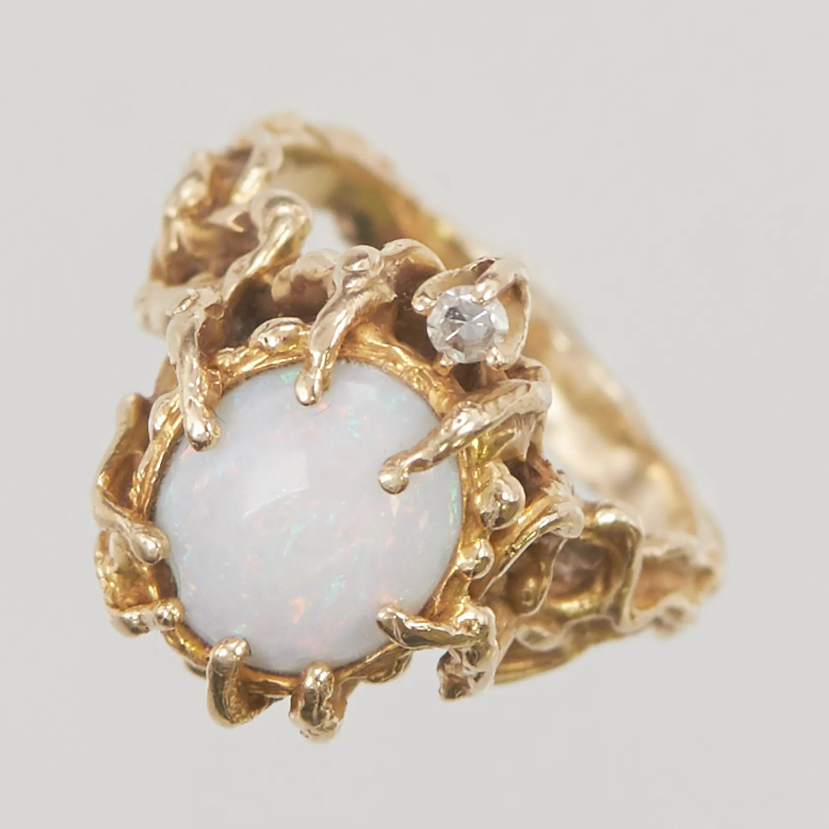 Ring med opal samt diamant 1xca. 0,02ct, Ø16¼, 14K, 7,5g. Vikt: 7,5 g.