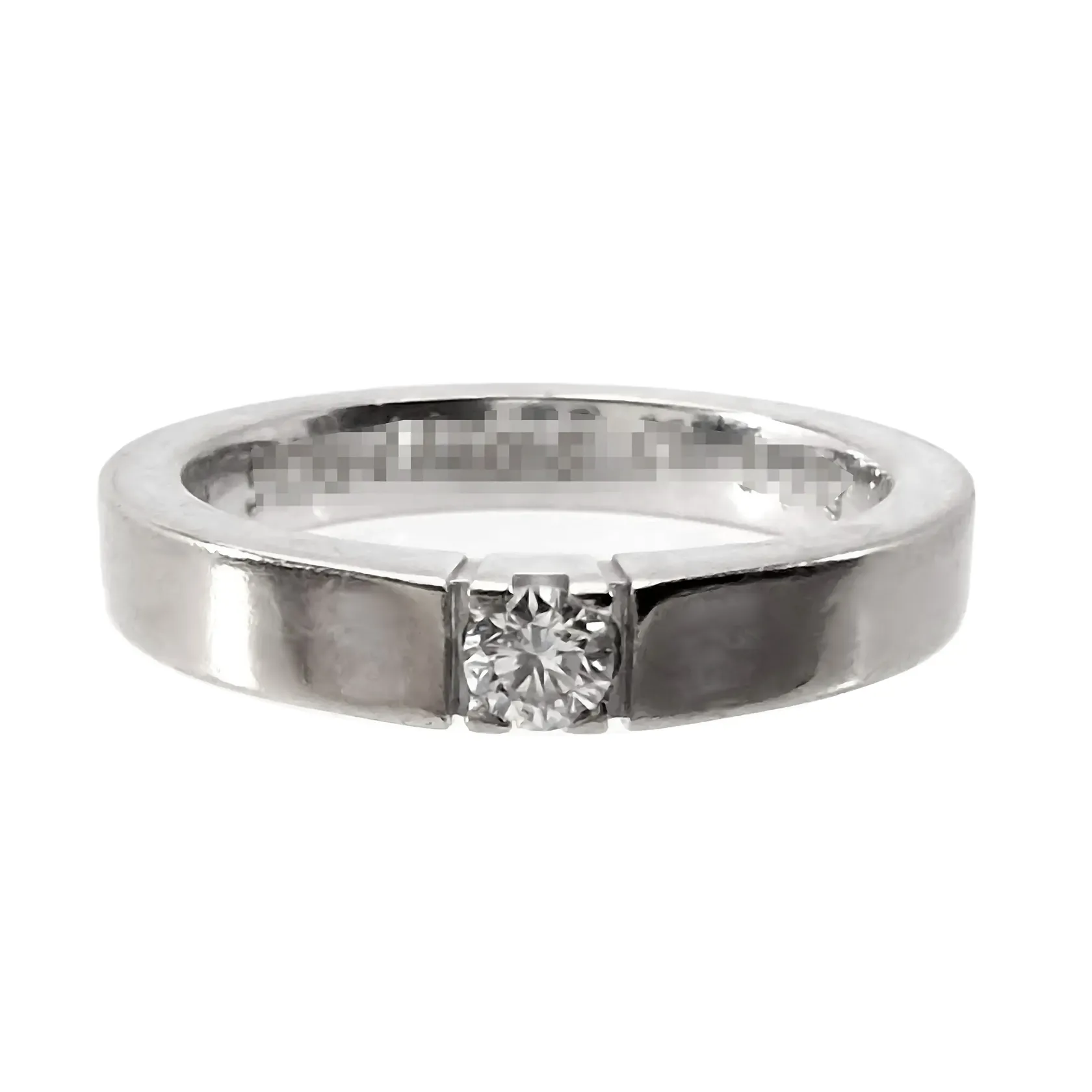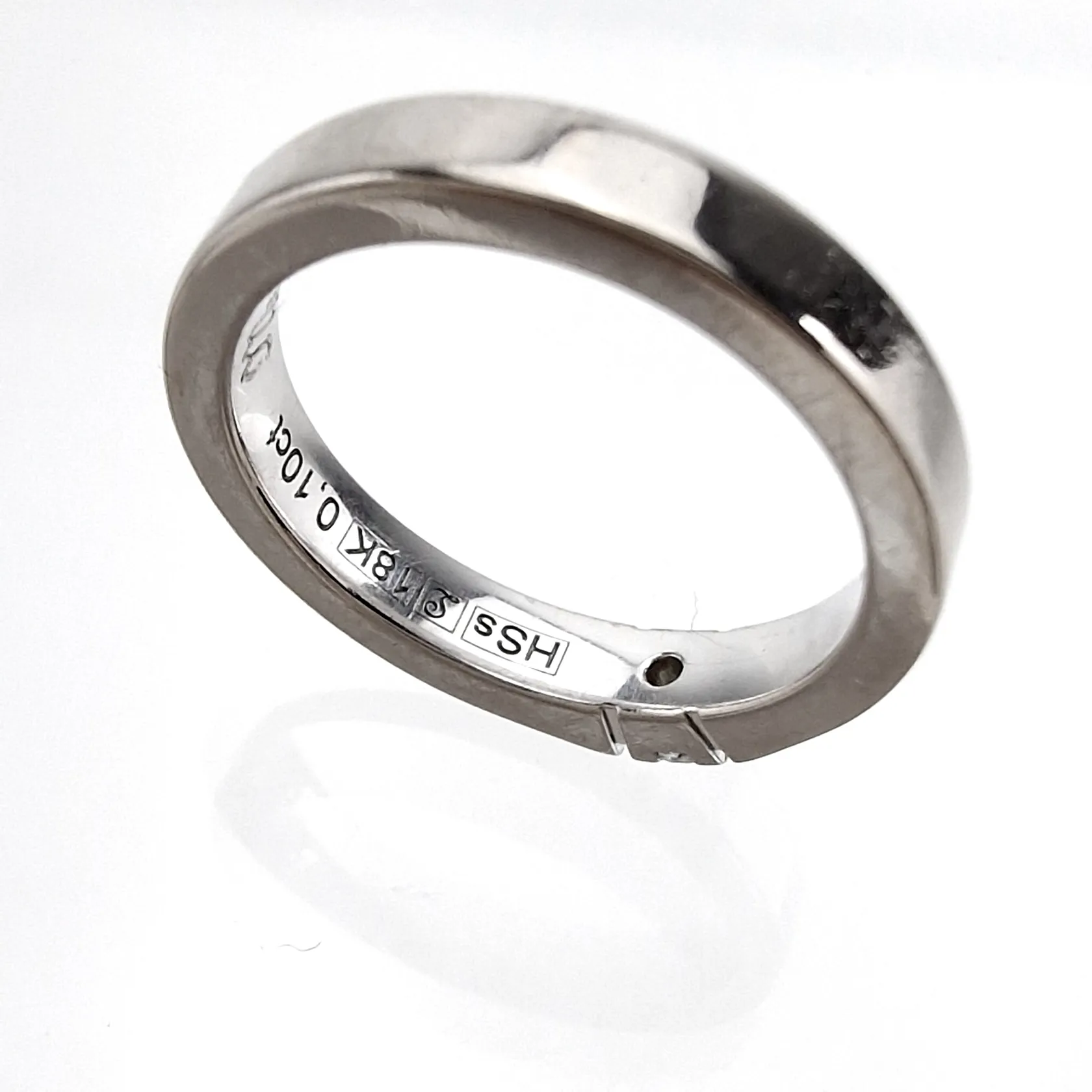 Ring 18K vitguld Diamant 0,10ct - stämplat på skenans insida, tillverkarstämpel HSs (H. Sundelius), Lund, Ø16,0 mm, bredd 3 mm, fint skick, borttag av gravyr ingår Vikt: 5,8 g.