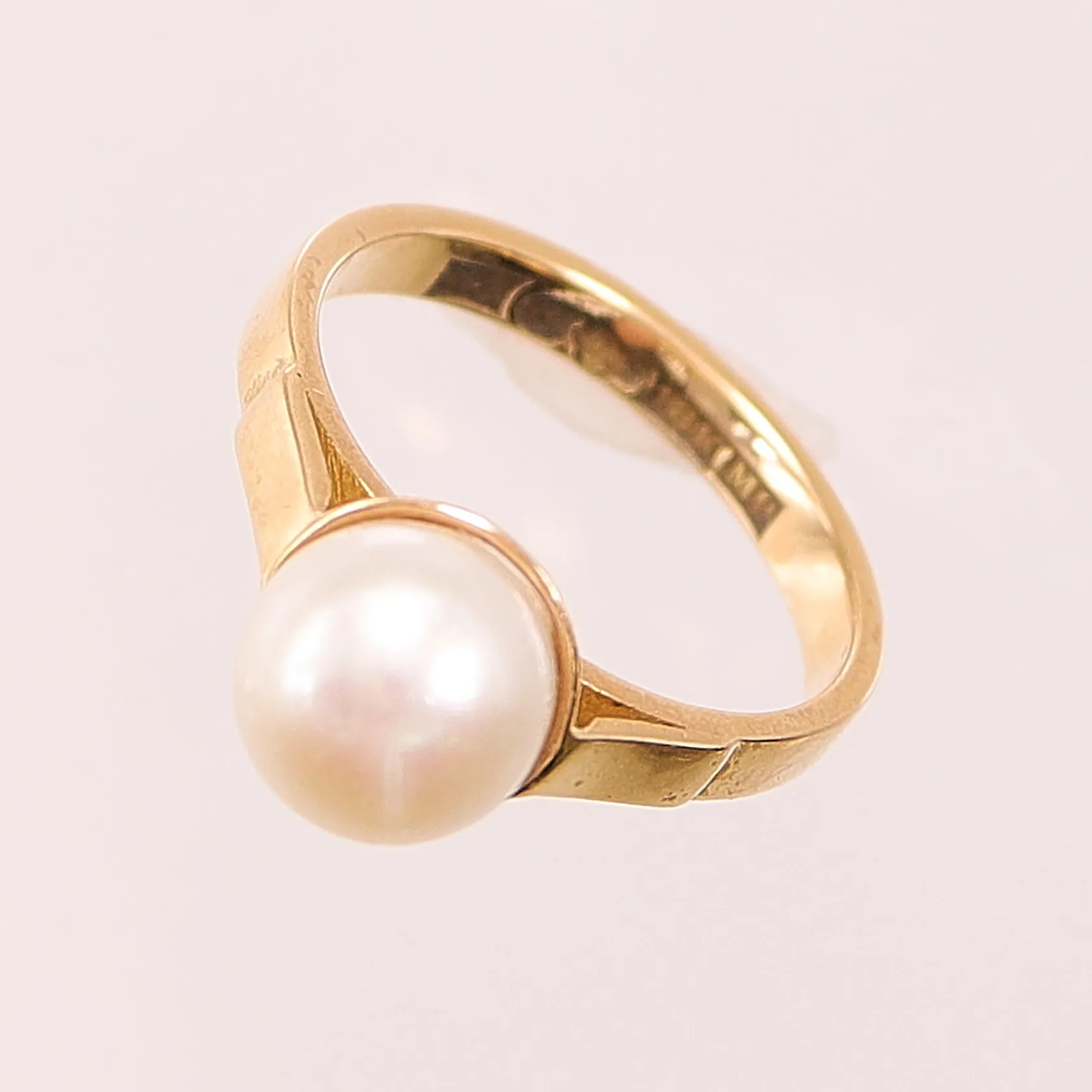 Ring med pärla, Ø17, pärlans bredd ca: 8mm, 18K 4g. Vikt: 4 g.