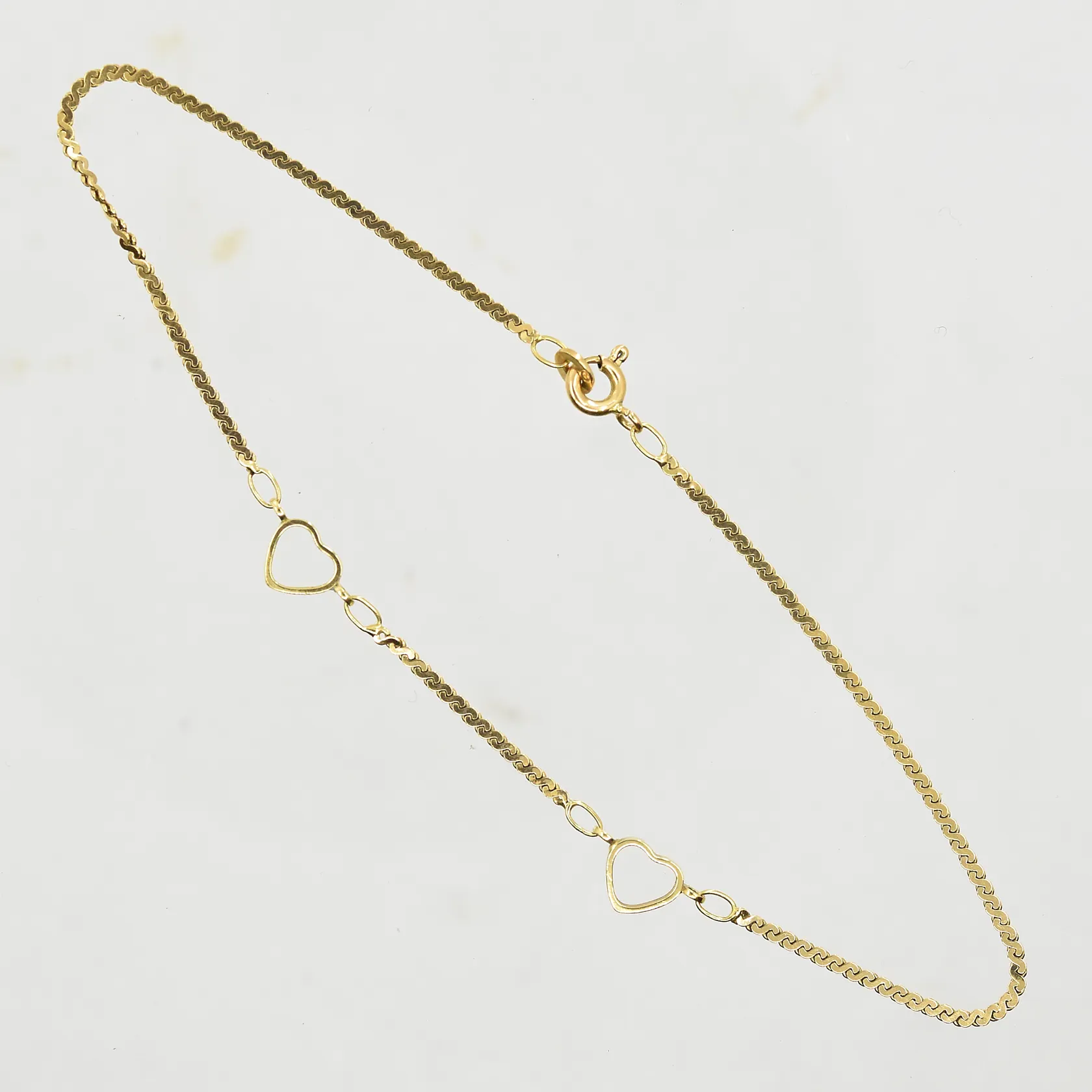 Fotlänk med hjärtan, längd 24½ cm, länkens bredd 2 mm, 18K. Vikt: 3 g.